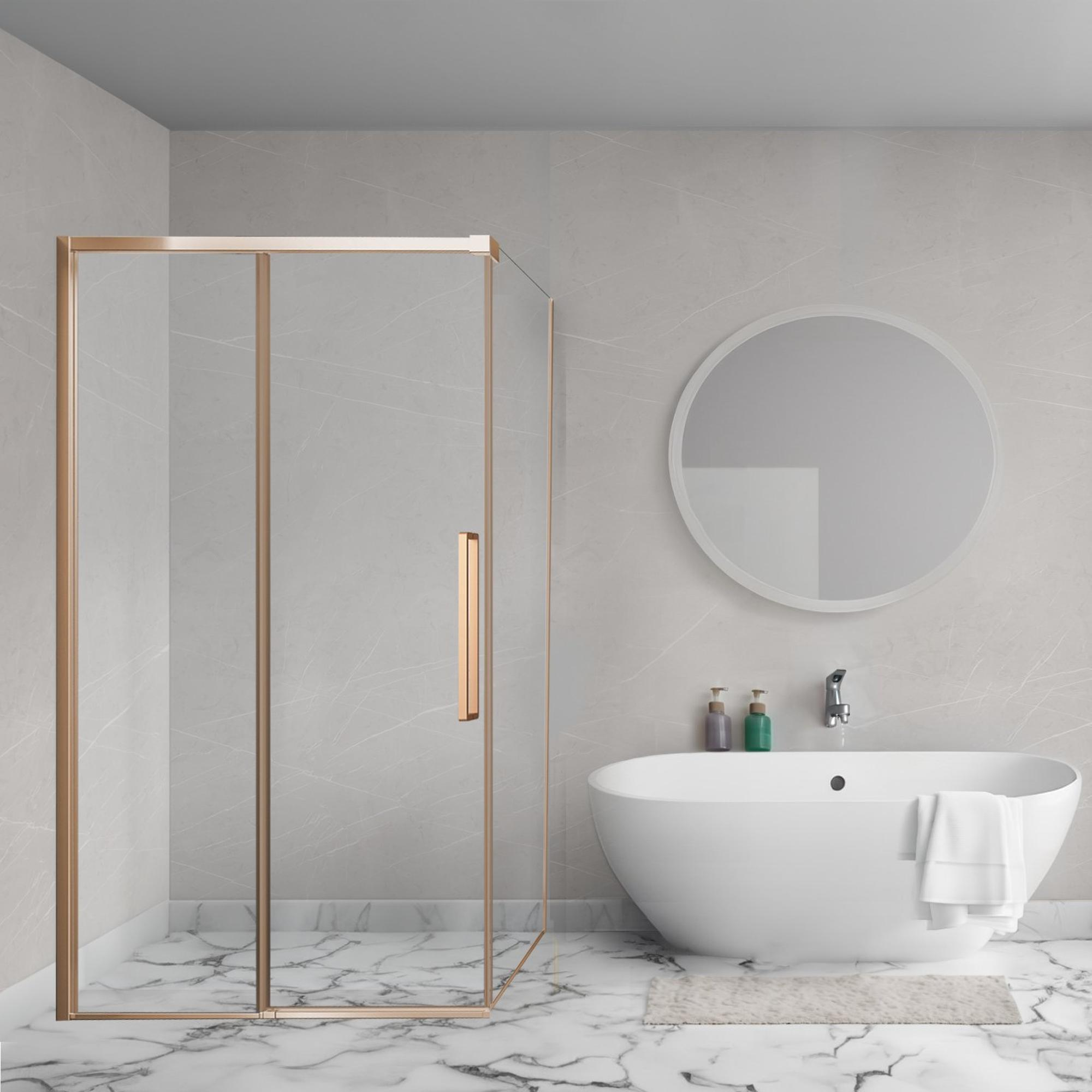 Avec cette spacieuse paroi latérale, vous créez un espace de douche ouvert et luxueux qui s’intègre parfaitement dans une salle de bains moderne. Grâce à ses dimensions de 80x200 cm, c’est un choix idéal pour les douches à l’italienne ou en combinaison avec une porte de douche, aussi bien dans les petites salles de bains urbaines que dans les vastes espaces bien-être. Le verre de sécurité transparent laisse librement circuler la lumière dans la pièce, ce qui donne à votre salle de bains une apparence plus grande et plus lumineuse, tandis que le cuivre brossé apporte une touche chaleureuse et design. Si vous recherchez une paroi de douche élégante qui s’adapte aussi bien aux intérieurs hôtel-chic, industriels que modernes et qui est en plus pratique à l’usage quotidien, alors il s’agit d’un choix extrêmement judicieux et pérenne.
