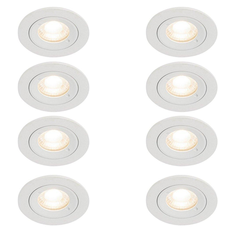 QAZQA Xena spot encastré - set de 8 - 8x8cm - IP44 - rond - blanc mat
