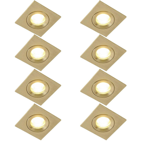 QAZQA Xena spot encastrable - set de 8 - 8x8cm - IP44 - carré - or