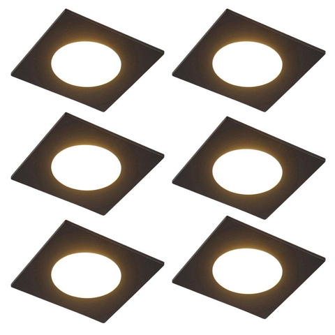QAZQA Simply Spot encastré - set de 6 - 9x9cm - LED incluse - 3 niveaux de gradation - IP44 - carré - noir mat