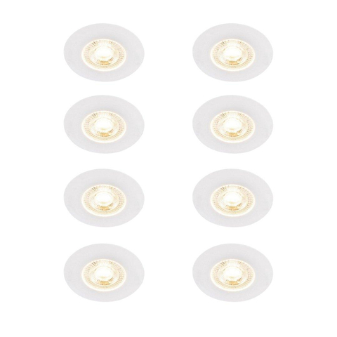 QAZQA Ulo Spot encastré - set de 8 - 8,2x8,2cm - LED incl. - 3 niveaux de gradation - IP44 - rond - blanc mat