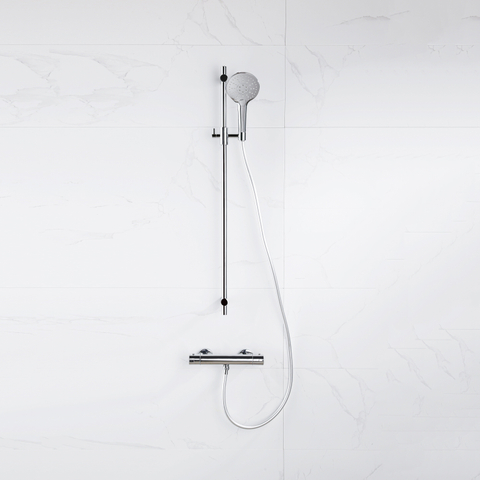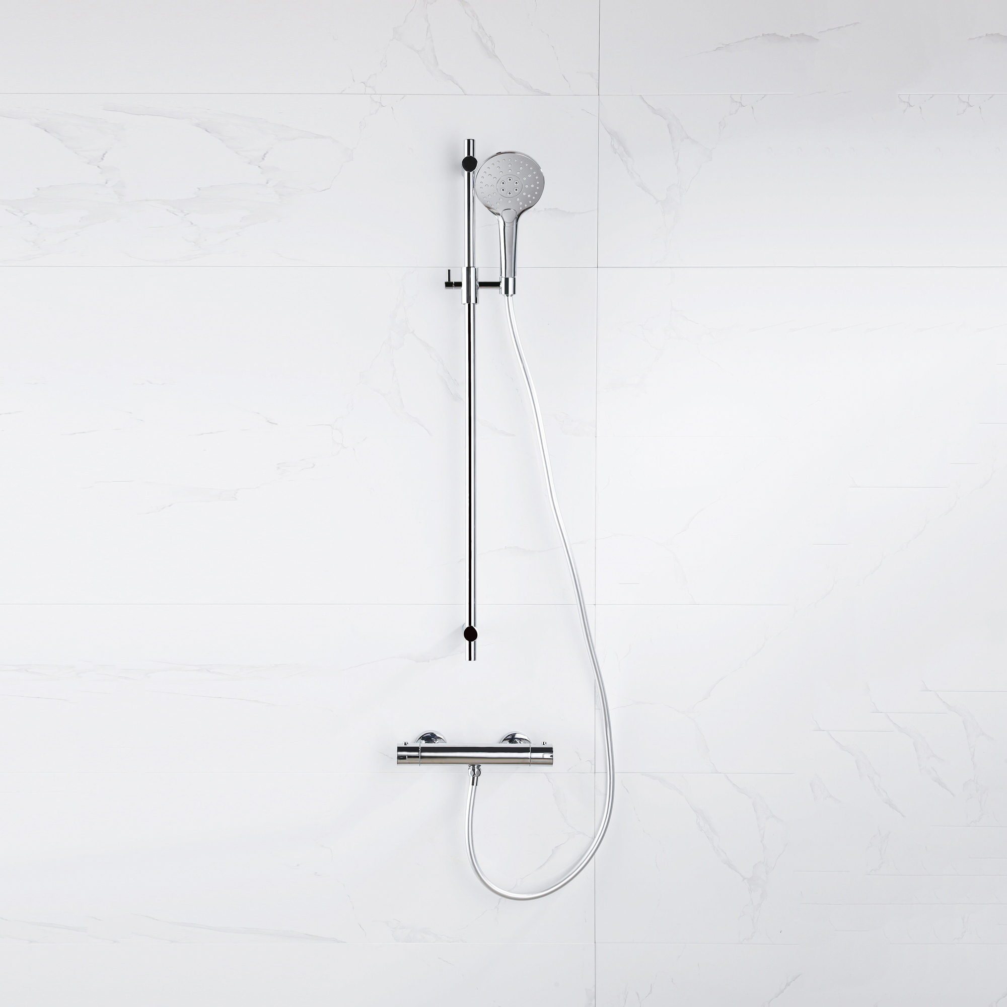 Ce set de barre de douche avec coude de raccord mural intégré est conçu pour offrir confort quotidien et facilité d’utilisation. La douchette est réglable en hauteur sur la barre, ce qui permet à chaque membre de la famille de positionner facilement la douche à la hauteur souhaitée. Le flexible de douche en métal est souple à l’usage et simple à nettoyer, contribuant ainsi à une douche hygiénique et facile à entretenir. Grâce au raccord mural intégré, votre espace de douche reste bien ordonné et l’installation est claire et efficace, aussi bien pour l’installateur professionnel que pour le bricoleur averti.