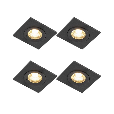 QAZQA Xena spot encastré - ensemble de 4 - 8x8cm - IP44 - carré - noir mat