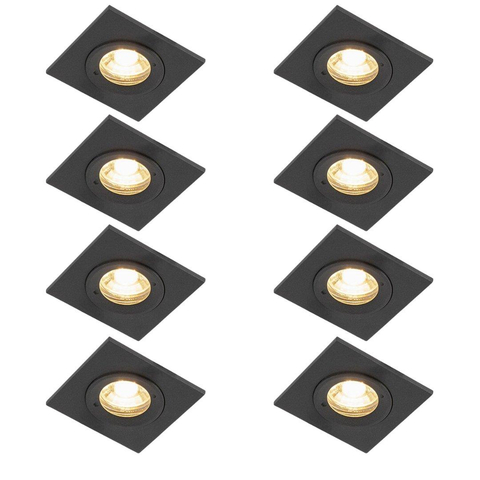 QAZQA Xena spot encastré - set de 8 - 8x8cm - IP44 - carré - noir mat