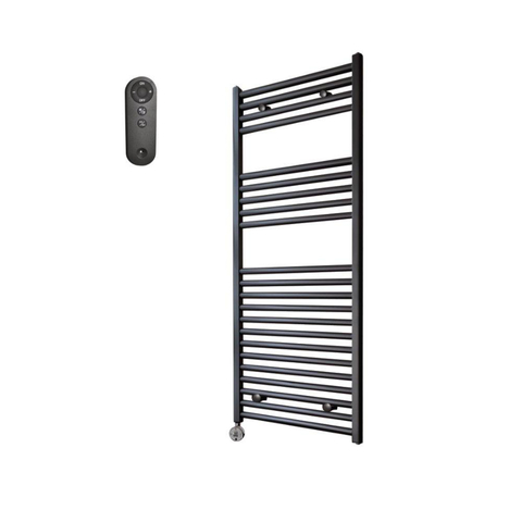 Sanicare HVS Radiateur électrique - 111,8x60cm - 730W - avec télécommande - thermostat - chrome - en bas à gauche - noir mat