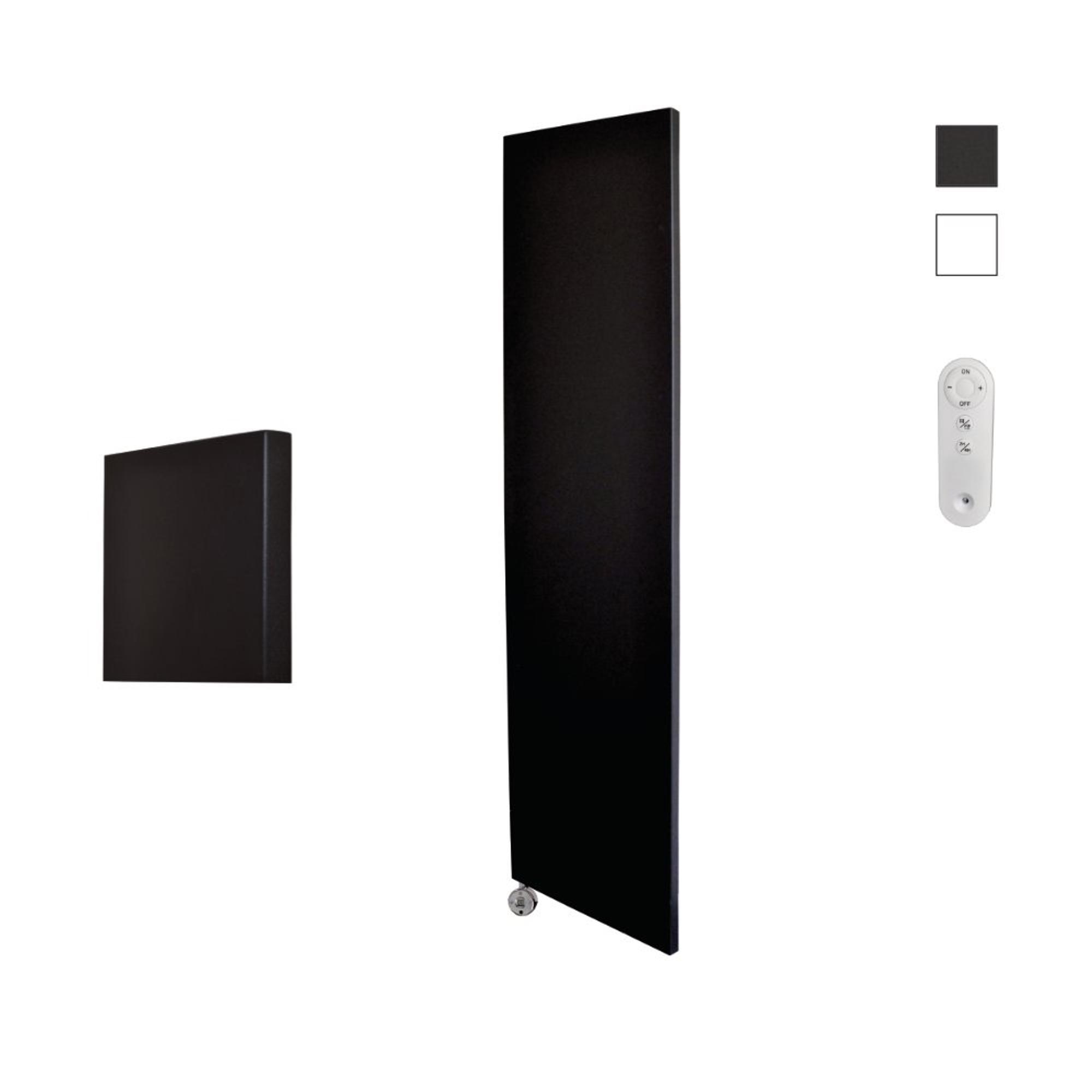 Sanicare HVS Denso Radiateur électrique - 180x40cm - 948W - avec télécommande - thermostat - chrome - en bas à gauche - noir mat