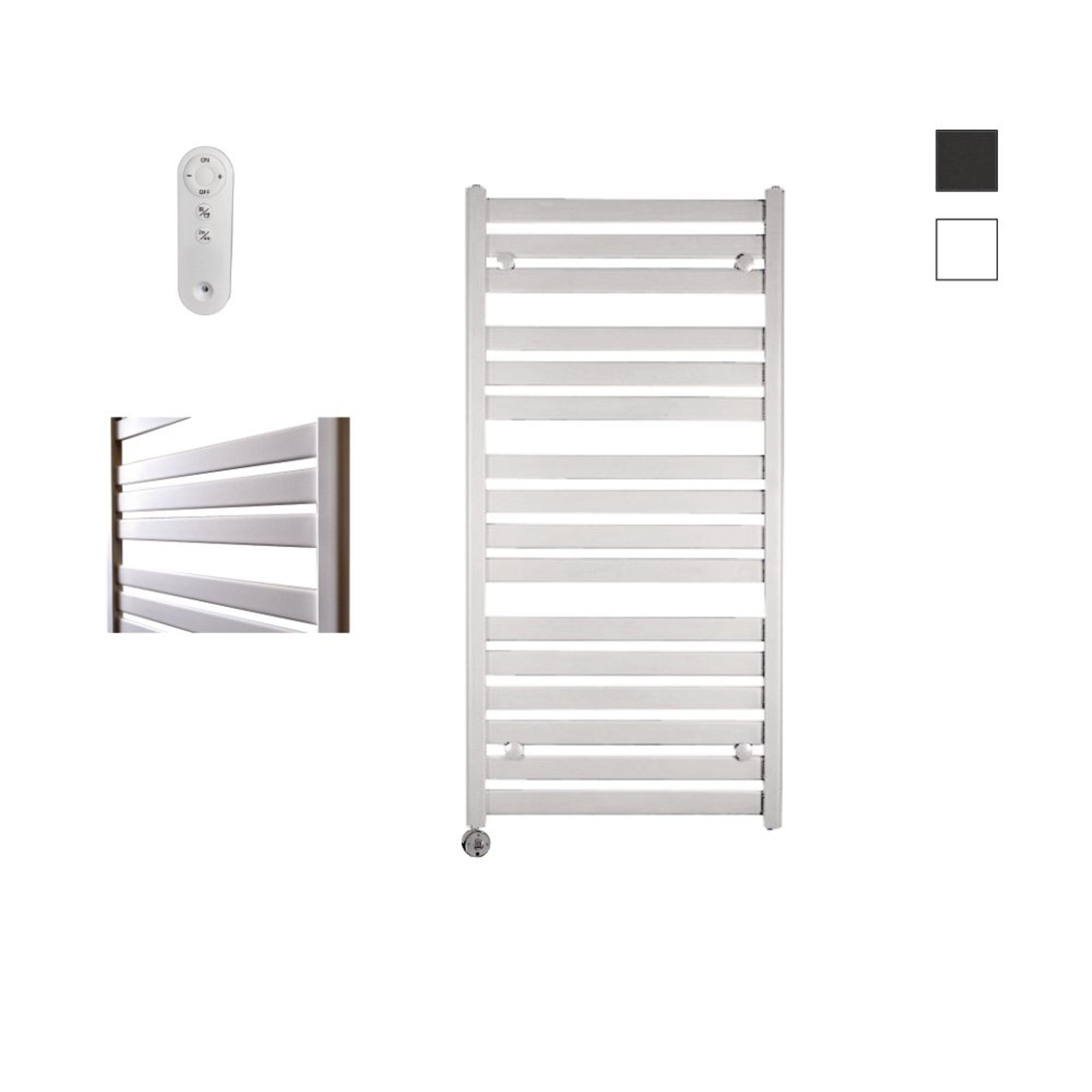 Sanicare HVS - Moda Radiateur électrique - 120x60cm - 876W - avec télécommande - thermostat - chrome - en bas à gauche - blanc mat