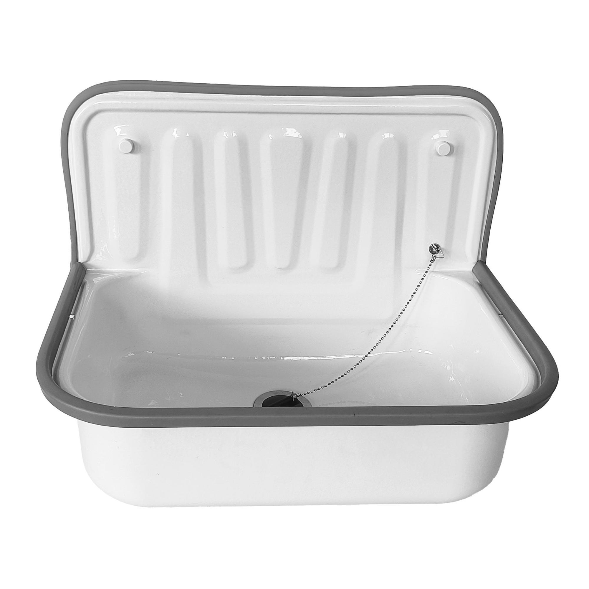 - Évier de décharge compact de 50,5 x 33 x 37 cm, idéal pour arrière-cuisine, garage ou remise.