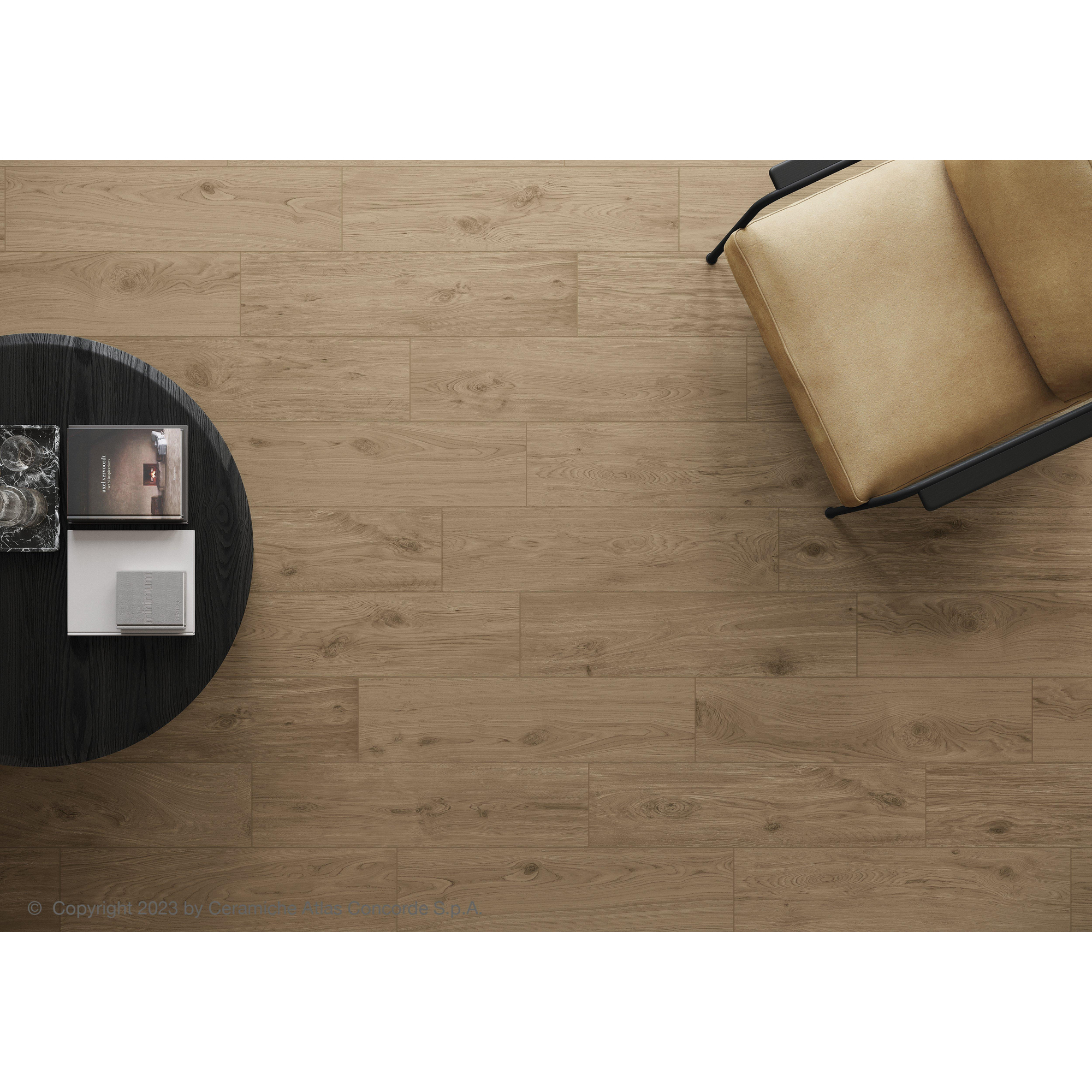 Le carrelage sol et mur Atlas Concorde Solution Would Carrelage sol et mur - 22,5x90cm - 8mm - rectifié - (brun) possède des bords rectifiés très précis, ce qui simplifie la pose sur vos murs et sols de salle de bains. Le carreleur peut travailler avec des joints étroits pour obtenir une finition haut de gamme et presque sans rupture visuelle autour de votre douche, de votre meuble vasque ou de vos toilettes. Au quotidien, ce carrelage céramique effet bois est particulièrement simple d’entretien: les salissures et les dépôts de calcaire adhèrent moins que sur un véritable parquet, et la surface est résistante aux produits utilisés dans la salle de bains et aux conditions humides. Cela en fait un revêtement de sol et de mur très pratique pour les salles de bains familiales intensément utilisées et les toilettes fréquentées.