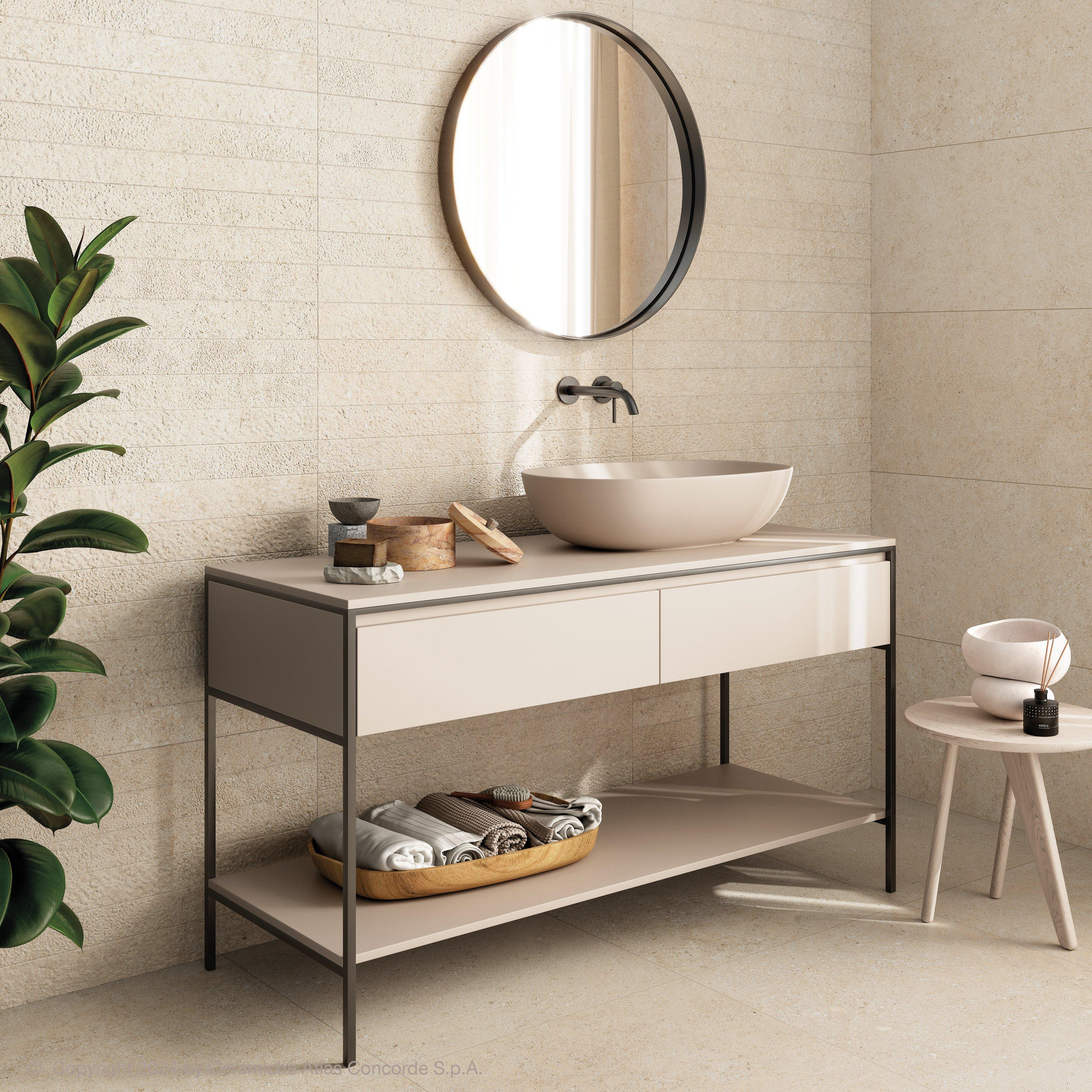 Le carreau mural Atlas Concorde Solution Yacht - 40x80cm - 8.5mm - rectifié - (Crème) est le choix idéal si vous souhaitez donner à votre salle de bains ou à vos toilettes une atmosphère calme et luxueuse. Ce carreau mural crème s'intègre parfaitement aussi bien dans une salle de bains moderne que dans un espace plus intemporel, et se marie harmonieusement avec la douche à l'italienne, le meuble vasque et le WC suspendu. Grâce au format allongé 40x80, vous créez un effet de volume sur le mur, tandis que les bords rectifiés assurent des joints fins et une finition haut de gamme. Vous obtenez ainsi un revêtement mural en grès cérame durable et facile d'entretien comme base de votre salle de bains complète.
