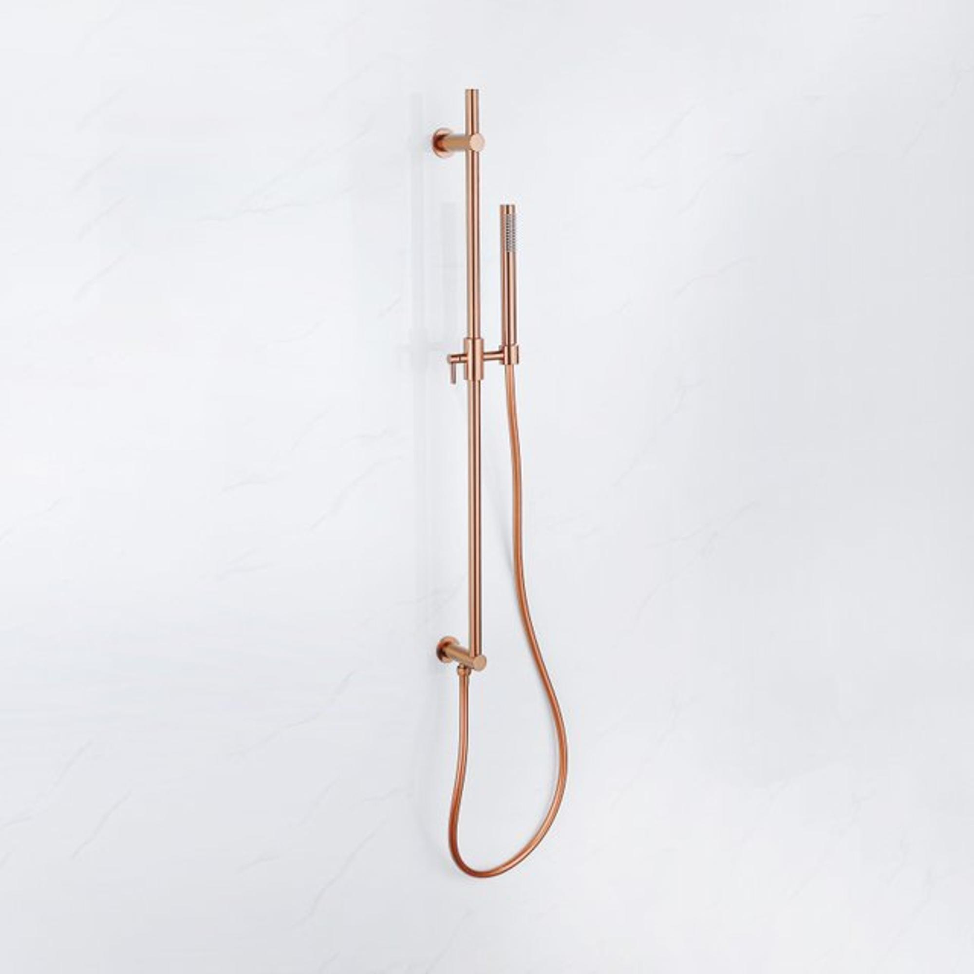 Fugaflow Eccelente Sobrado Ensemble de barre de douche - coude de raccordement mural intégré - flexible de douche lisse - douchette à main - Cuivre brossé PVD (Cuivre)