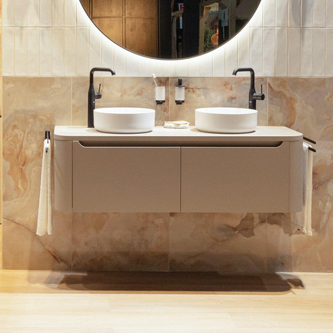 HR badmeubelen Juice Meuble sous-vasque avec plan - 140x45x40cm - coins arrondis - 2 tiroirs - beige mat