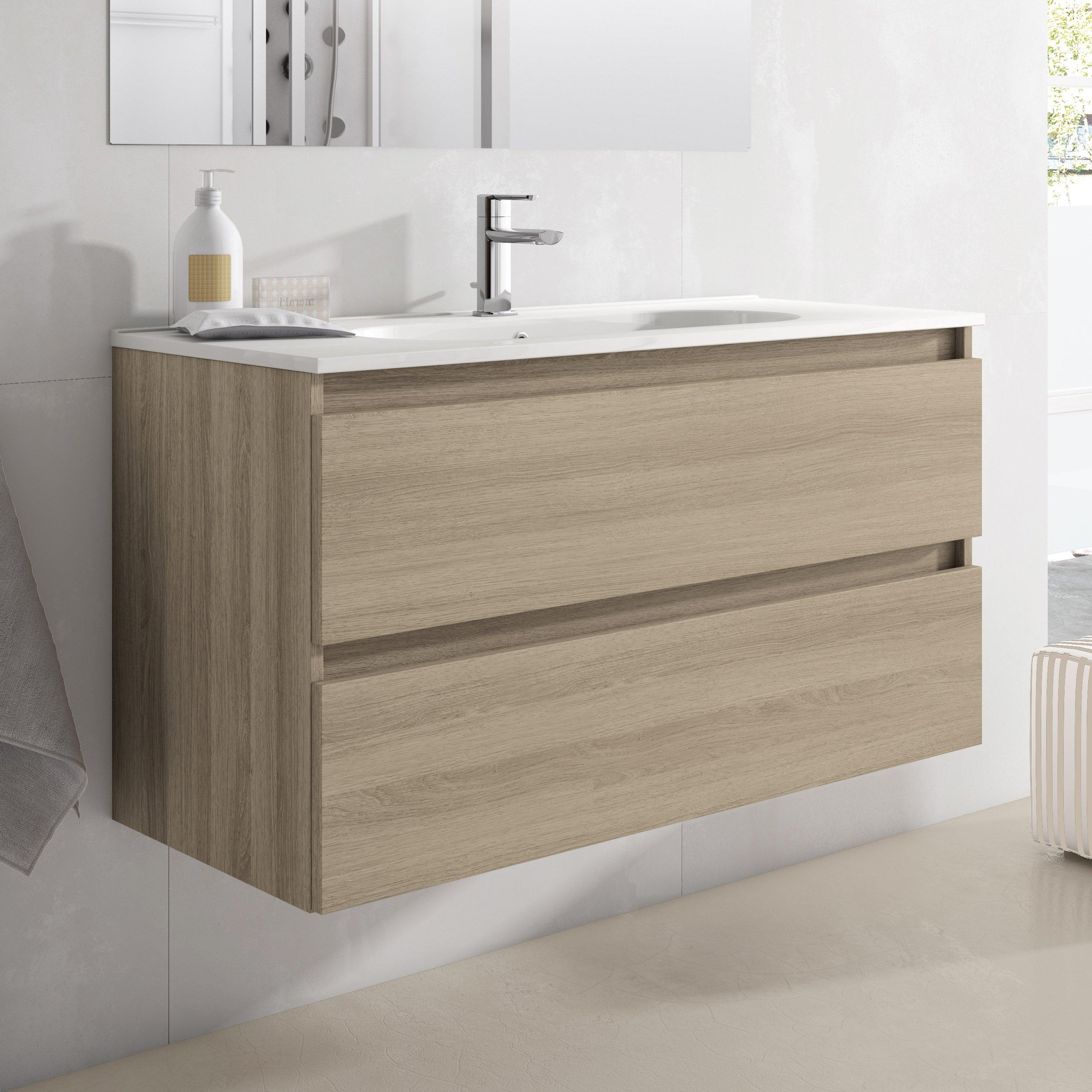 Saniclass Chaci Meuble bas de salle de bains - 100cm - 2 tiroirs - sans poignées - chêne