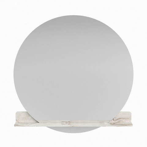 La forme ronde apporte une allure douce et élégante qui se marie à merveille au-dessus d’un meuble simple ou double pour lavabo. La couleur Frappe mate de la tablette s’accorde parfaitement avec les tendances actuelles de la salle de bains : tons sable et beige, bois naturel, accents noirs ou encore ton sur ton dans des couleurs naturelles et apaisantes. Grâce au design minimaliste sans cadre, le miroir paraît spacieux et aérien, idéal si vous souhaitez donner l’impression d’agrandir une petite salle de bains. La surface de miroir légèrement encastrée dans la tablette crée un détail raffiné qui fait immédiatement de l’ensemble une pièce de design, plutôt qu’un simple miroir standard accroché au mur.