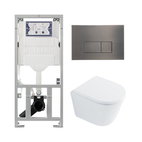 QeramiQ Dely Pack WC - 36,3x51,7cm - à fond creux - sans bride - réservoir encastré Geberit UP320 - abattant WC softclose 35 mm - plaque de commande gunmetal - boutons rectangulaires - blanc brillant