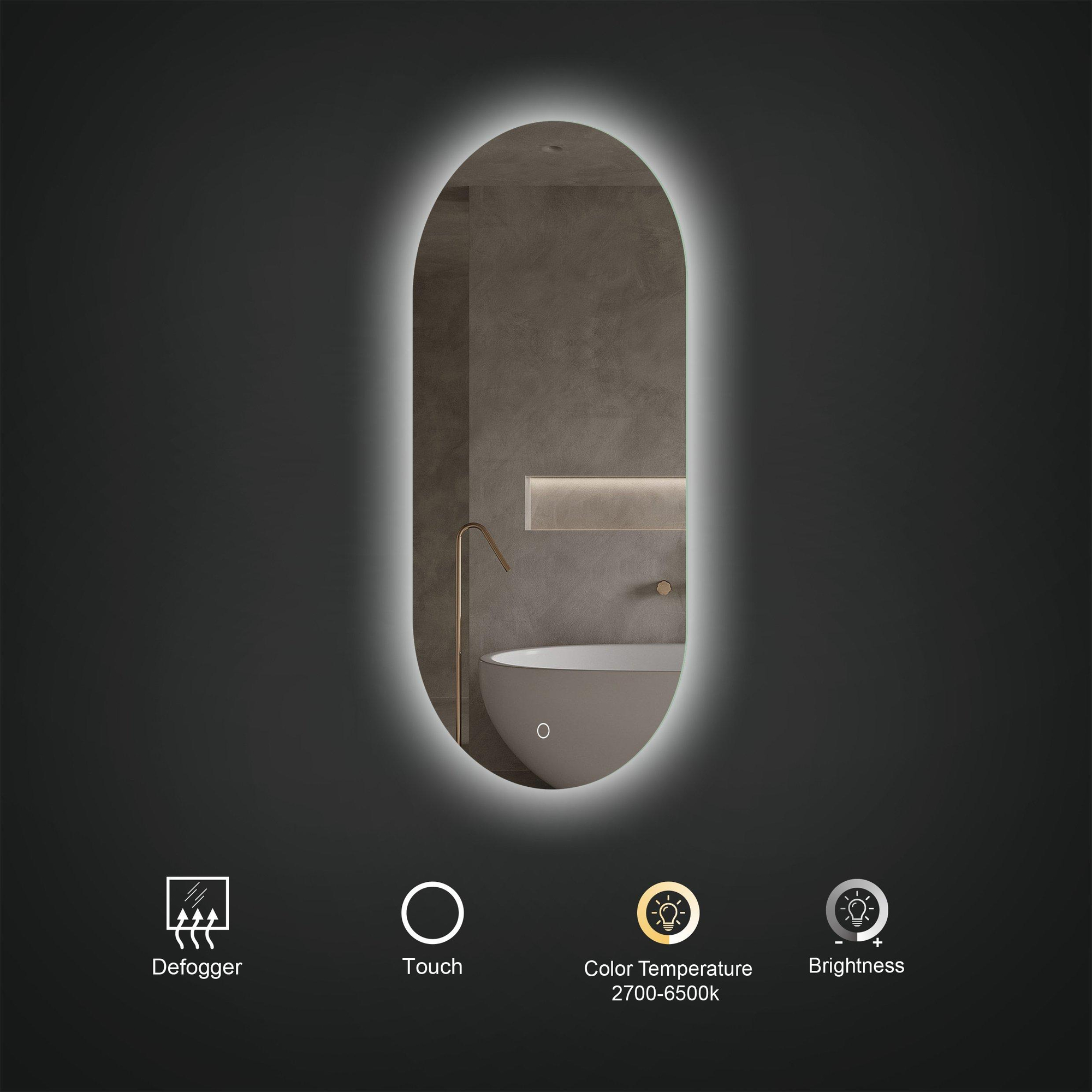 Arcqua Oval Miroir - 40x80cm - ovale - vertical - rétroéclairage LED