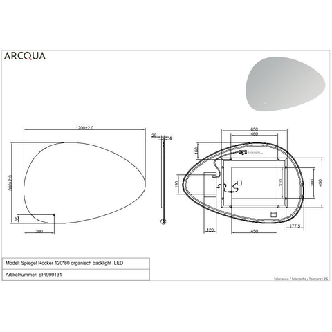 Arcqua Rocker Miroir - 120x80cm - organique - rétroéclairage LED