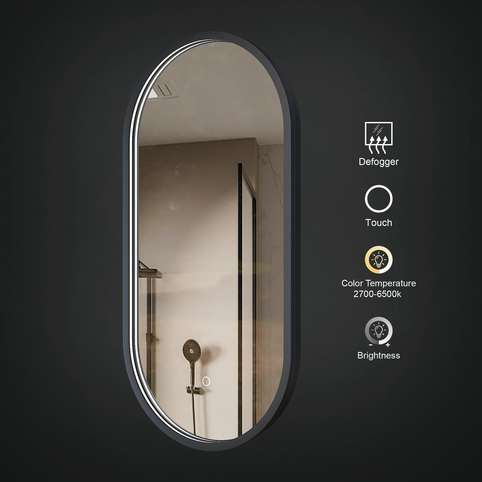 Arcqua Framed Miroir - 40x80cm - ovale - vertical - LED avant - noir mat