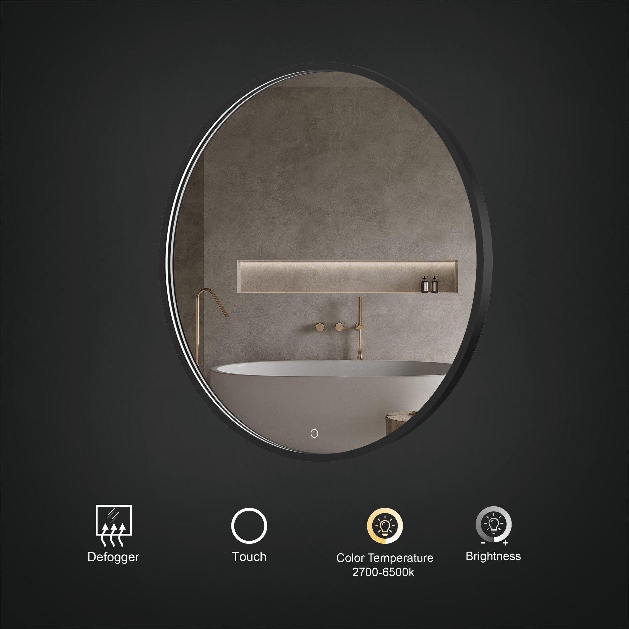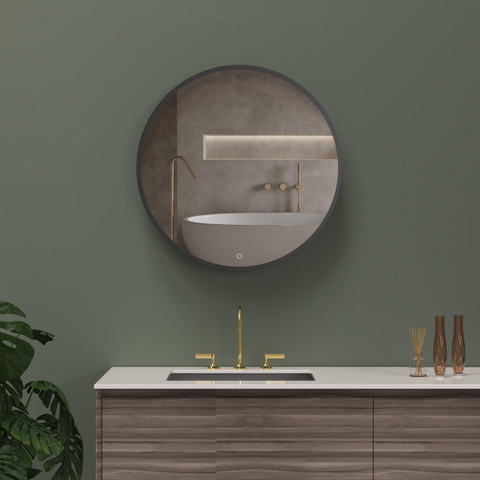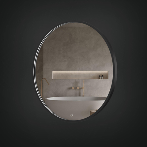 Arcqua Framed Miroir - 100cm - rond - LED avant - mat noir