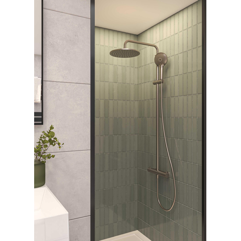 Avec cet ensemble complet en installation apparente, vous créez en une seule fois une douche de tête luxueuse dans votre coin douche, sans travaux de perçage ni de démolition. La généreuse douche de tête d’un diamètre de 25 cm offre un jet pluie ample et enveloppant, tandis que la douchette à main à 3 jets est parfaite pour une utilisation quotidienne, par exemple pour rincer vos cheveux ou rincer la paroi de douche. Grâce à la finition nickel brossé PVD, cet ensemble s’intègre parfaitement dans les salles de bains modernes, industrielles et intemporelles, en particulier en combinaison avec des robinets ou des accessoires aspect inox. Le thermostat assure une température de l’eau constante et sûre, ce qui rend cet ensemble idéal pour les familles, les couples et toute personne recherchant un équilibre entre confort et design. Grâce au montage en apparent, c’est un choix judicieux pour la rénovation ou le remplacement d’un mitigeur de douche existant.