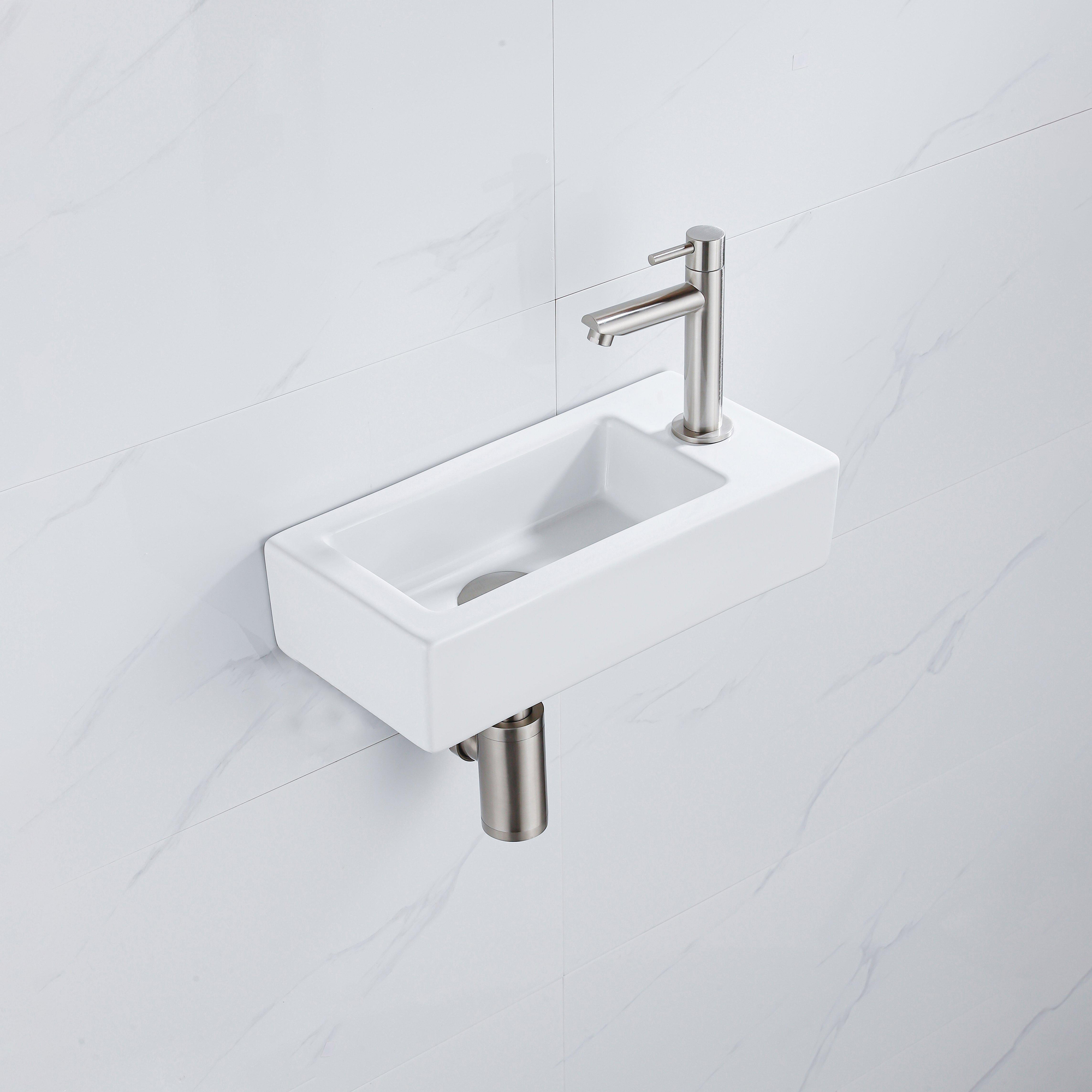 Le QeramiQ Fuente Kit lave-mains rayonne d'élégance grâce à l'utilisation de céramique de haute qualité en blanc brillant. La surface lisse et les lignes épurées du lave-mains donnent une sensation de raffinement et de beauté intemporelle. Le robinet lave-mains en inox brossé ajoute une touche moderne à l'ensemble, tandis que la bonde de vidage et le siphon abaissé assurent une finition sans joint.