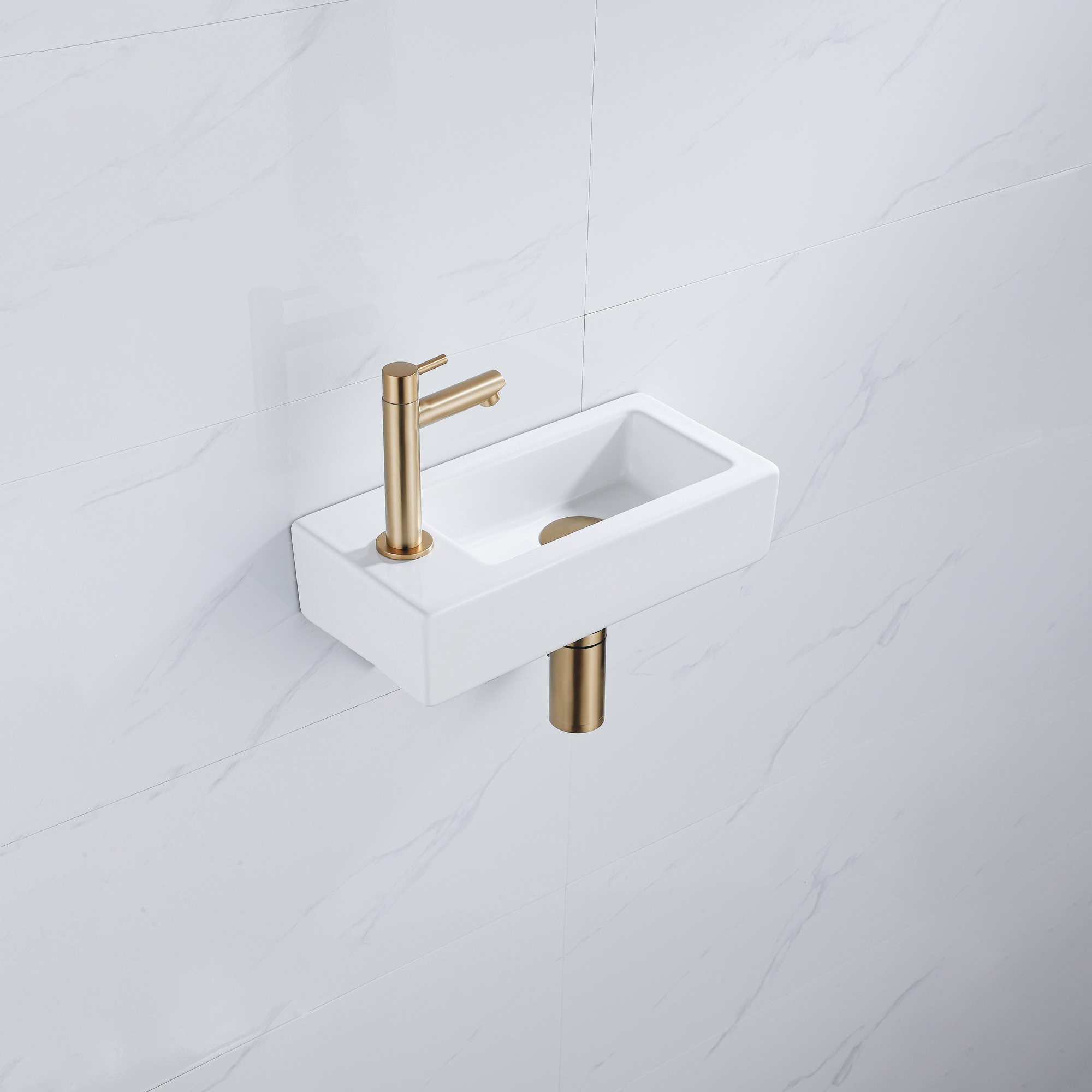 Cet ensemble lave-mains complet est un choix astucieux si vous souhaitez aménager de manière élégante et pratique un petit espace WC ou une salle de bains compacte. Grâce à son design étroit et rectangulaire, il prend à peine de place, tout en offrant suffisamment d’espace pour vous laver les mains confortablement. La combinaison de la céramique blanche brillante avec un robinet en laiton brossé offre un aspect moderne mais intemporel qui se marie facilement avec différents styles, du minimaliste et scandinave au style hôtel chic. Grâce au trou de robinet à gauche, cet ensemble est idéal lorsque les conduites ou l’agencement de votre pièce l’exigent, par exemple à côté d’une porte ou dans une niche étroite. Comme le robinet, la bonde et le siphon réduit sont inclus, vous avez tout ce dont vous avez besoin en une seule fois et vous n’avez plus à chercher des éléments séparés et assortis.