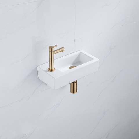 Choisissez cet ensemble lave-mains complet si vous souhaitez exploiter au mieux un petit espace sans faire de concessions sur le style et le confort. Avec la combinaison de céramique blanche brillante et de laiton brossé, vous créez en une seule fois un look soigné et moderne. Complétez votre salle de bains ou vos toilettes de rêve avec ce produit élégant et découvrez vous-même sa qualité.