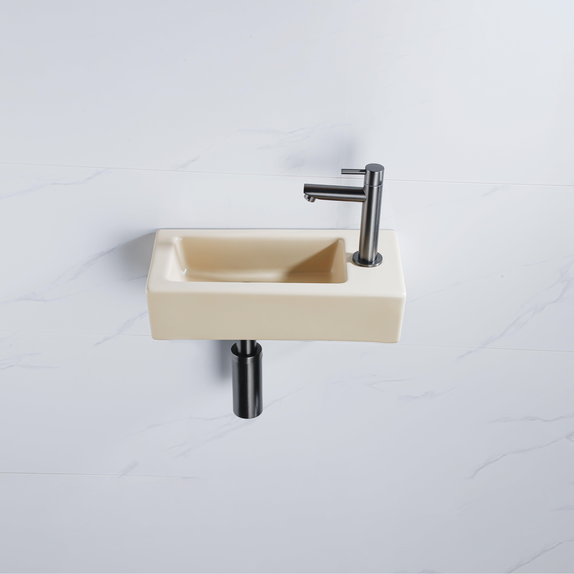 QeramiQ Lave-mains Kit lave-mains - 37.5x18.5x9cm - céramique - trou de robinet à droite - robinet lave-mains gunmetal - bonde de vidage - siphon abaissé - Mat Beige