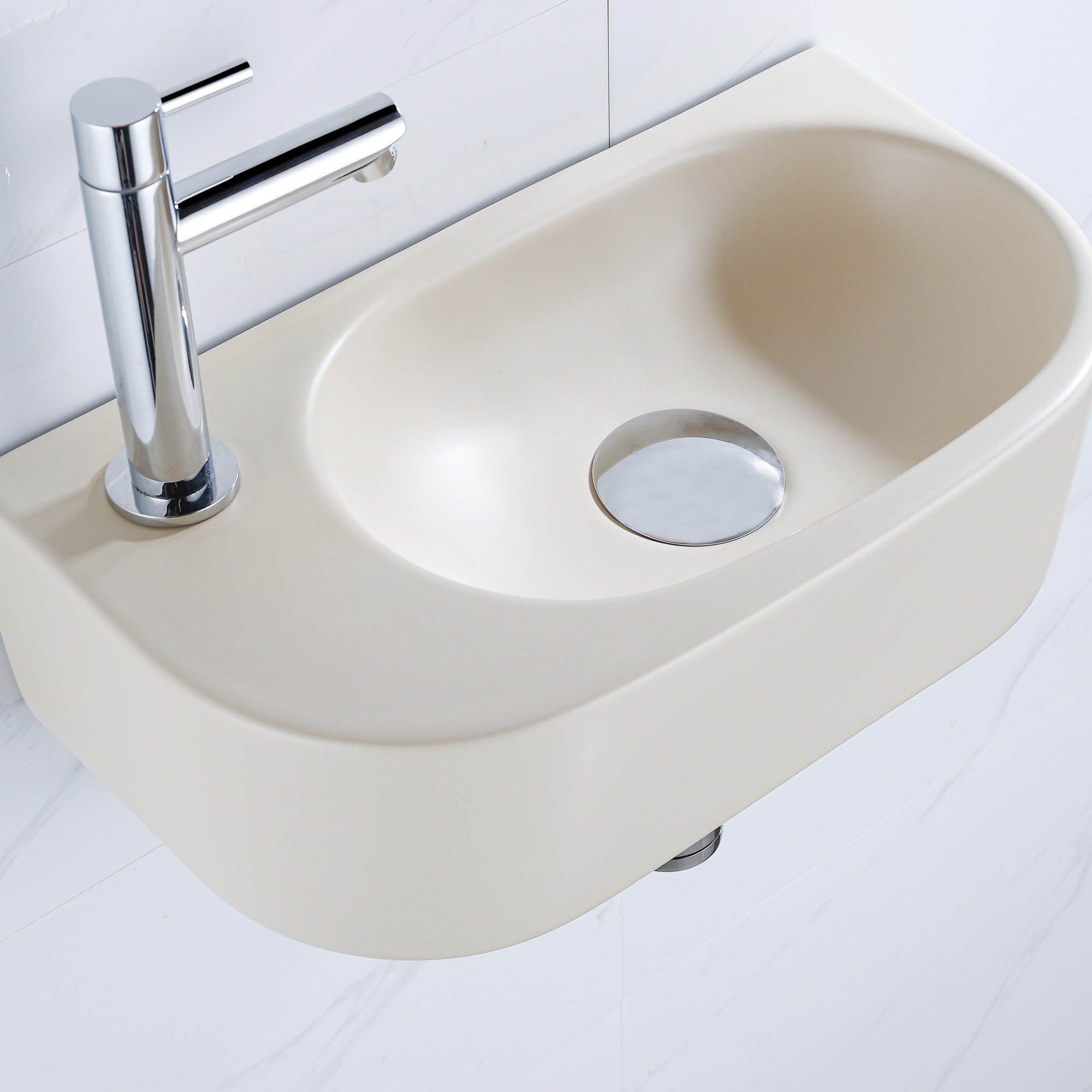 Ce lave-mains compact est un choix astucieux si vous souhaitez aménager de manière élégante et pratique un petit espace WC ou une niche de salle de bains étroite. Grâce à son design semi-rond et à sa faible profondeur, il s’intègre facilement dans les espaces compacts, tandis que la douce couleur beige apporte calme et chaleur. La céramique offre une sensation solide et de qualité, idéale si vous recherchez une solution facile d’entretien qui reste belle pendant des années. Comme le trou de robinet se trouve à gauche et que le set est livré complet avec robinet de lave-mains, bouchon de vidage et siphon abaissé, vous n’avez plus à chercher indéfiniment des éléments assortis : vous pouvez passer directement au montage. Cet ensemble est donc particulièrement adapté à ceux qui souhaitent créer un look moderne et épuré dans les toilettes ou la salle de bains des invités, sans faire de concessions sur la facilité d’utilisation et l’hygiène.