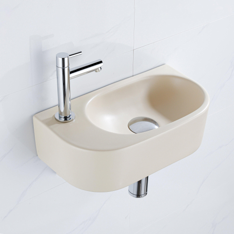QeramiQ Fuente Ensemble lave-mains - 40x21,5x12cm - gauche - lisse - semi-rond - 1 trou de robinet - céramique - robinet lave-mains chromé - bouchon de vidage - siphon abaissé - beige