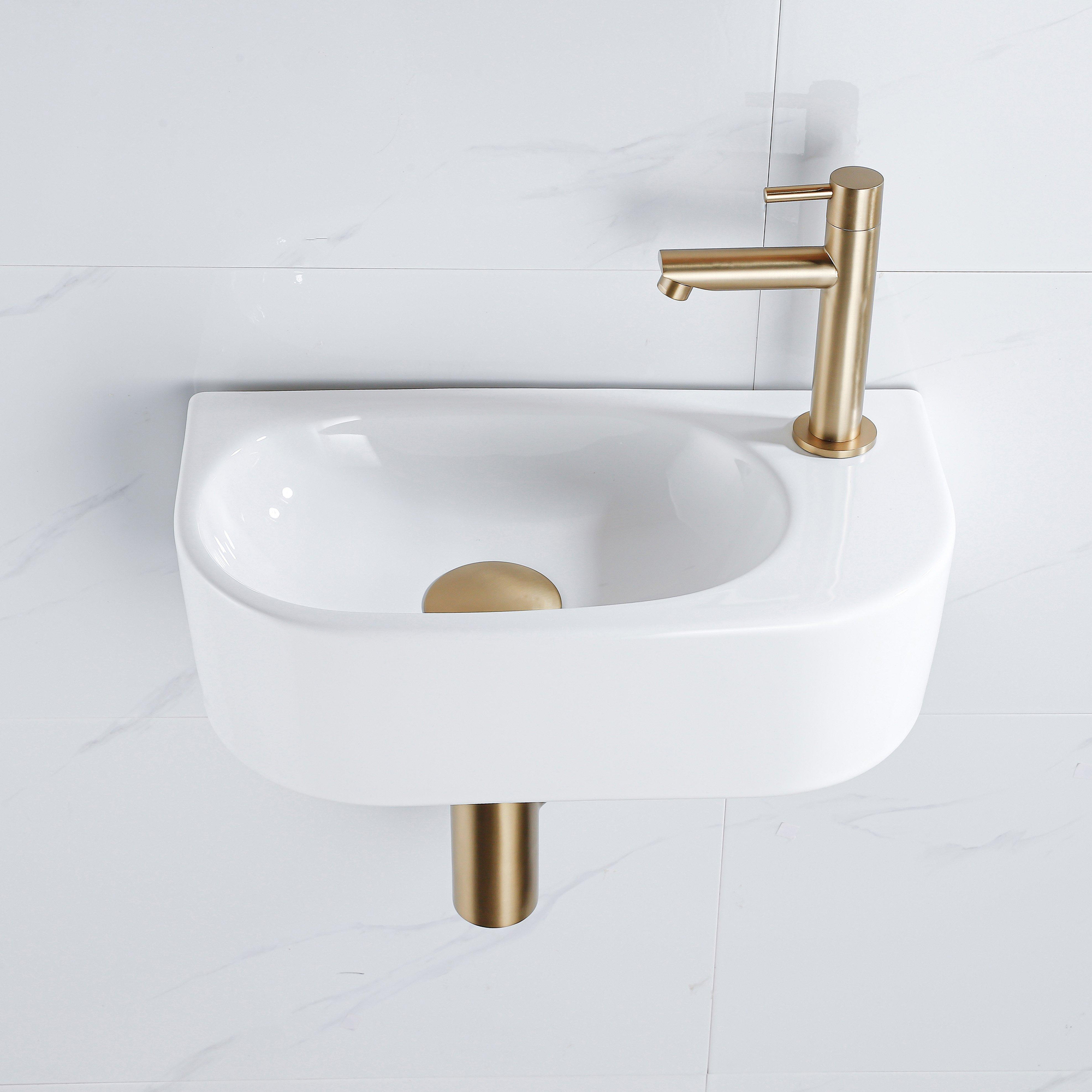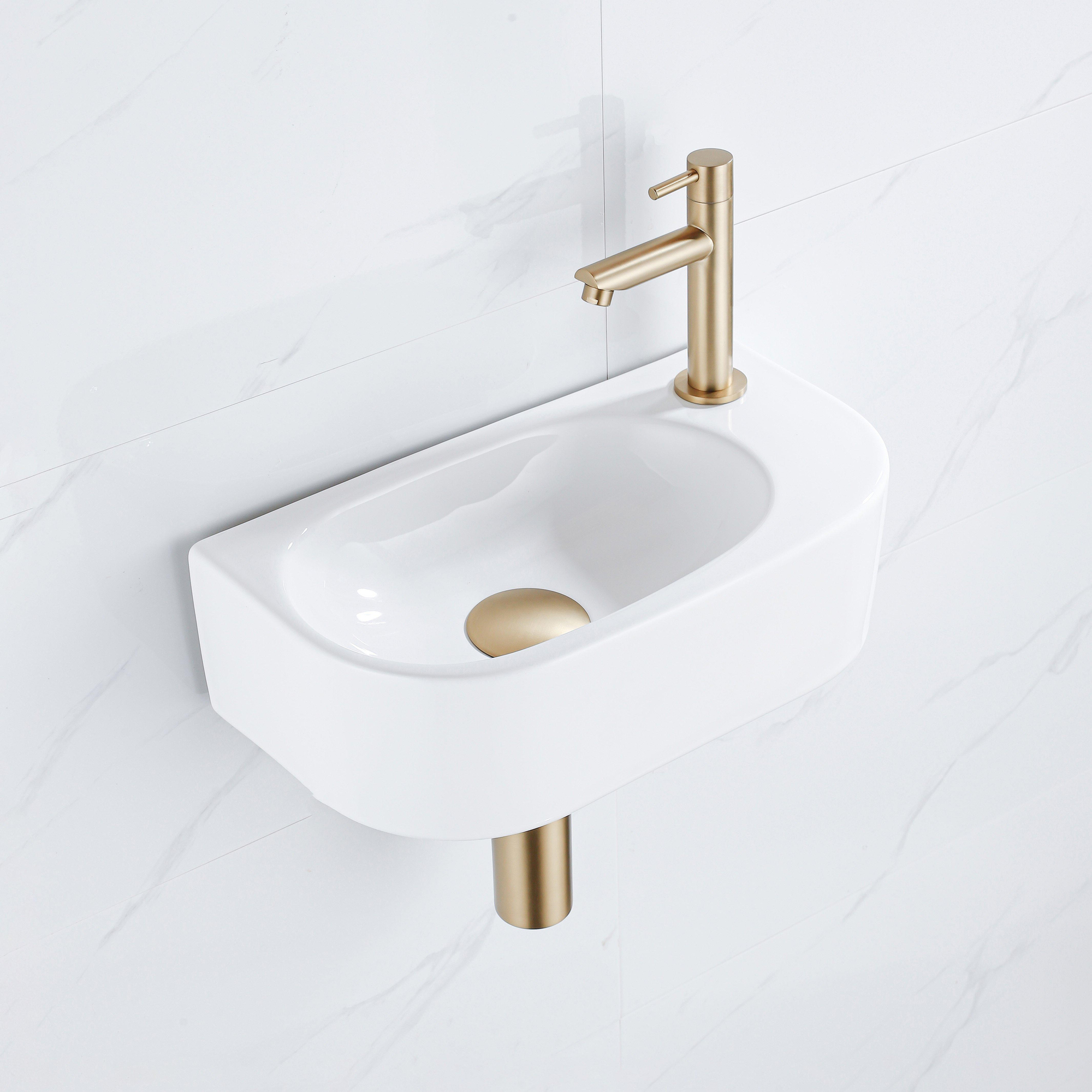 Ce lave-mains compact est idéal si vous souhaitez aménager avec style un petit espace toilettes ou une salle de bains étroite sans sacrifier le confort. Grâce à son format fin, il s'intègre parfaitement dans un WC étroit ou à côté de la porte, tandis que la forme semi-circulaire offre tout de même suffisamment d'espace de lavage. La combinaison de la céramique blanc brillant avec un robinet en laiton brossé donne un aspect moderne mais chaleureux qui s'accorde parfaitement aussi bien avec un aménagement minimaliste qu'avec une décoration plus classique. Comme il s'agit d'un ensemble complet, avec robinet, bouchon de vidage et siphon abaissé, vous n'avez plus besoin de chercher des éléments séparés qui vont ensemble. Vous faites ainsi en une seule fois un choix réfléchi et vous êtes sûr que tout est parfaitement coordonné et fonctionne de manière pratique au quotidien.
