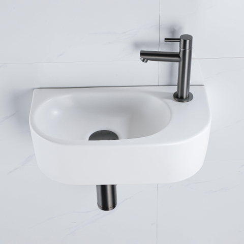 Le QeramiQ Fuente Ensemble de lavabo est un ajout élégant à toute salle de bains grâce à sa finition lisse. Le design demi-rond offre un aspect moderne et l’orifice de robinet placé à droite assure une disposition pratique et fonctionnelle. Fabriqué en céramique durable, cet ensemble de lavabo respire la classe et le style. Le robinet de lave-mains assorti en gunmetal ajoute une touche de luxe à l’ensemble.