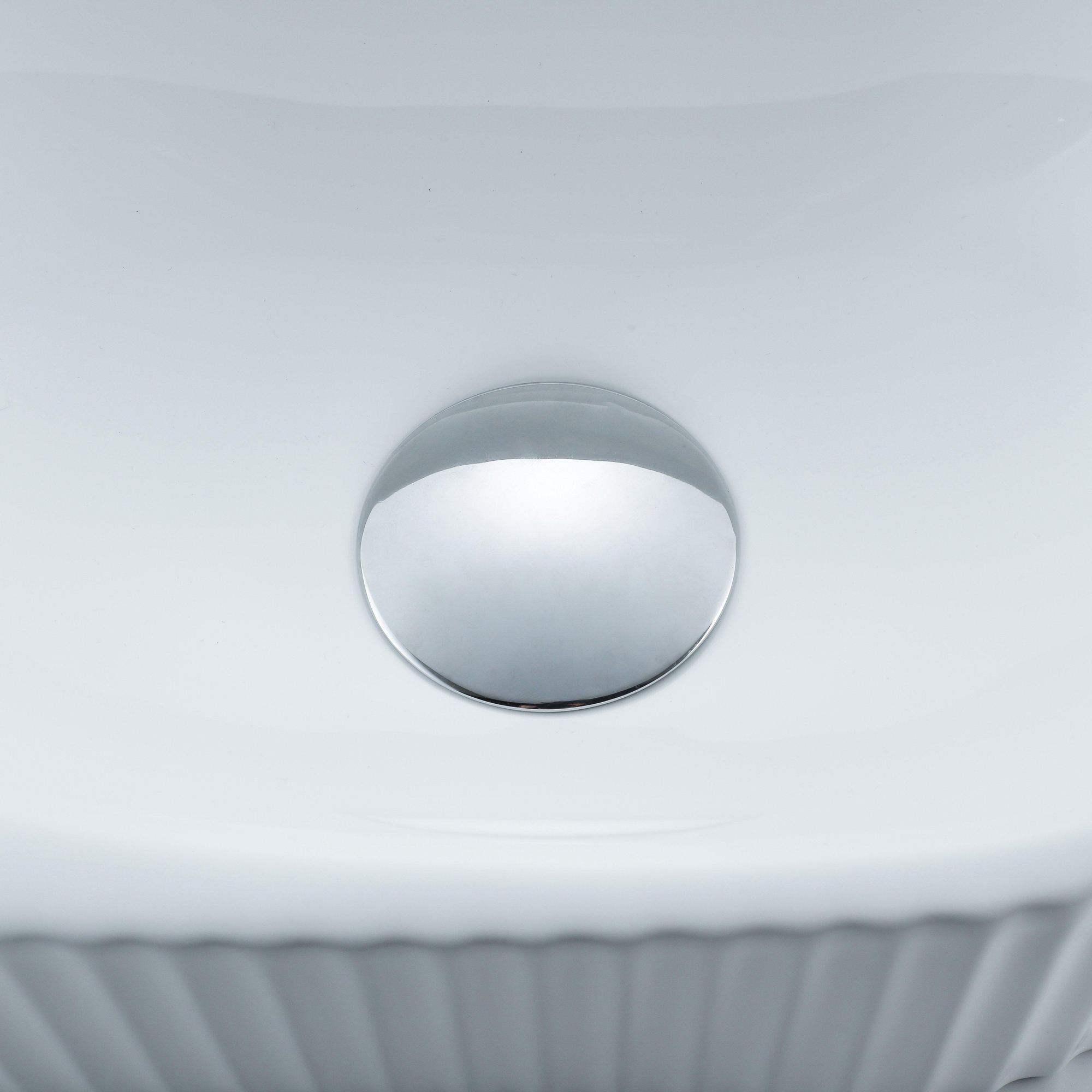 Le QeramiQ Fuente Ensemble de lave-mains dégage style et raffinement avec sa forme demi-ronde cannelée et sa finition blanche brillante. Le design est à la fois contemporain et élégant, ce qui en fait un véritable accroche-regard dans toute salle de bains. Les détails subtils et le trou pour robinet ajoutent une touche de luxe à l'espace, tandis que le robinet de lavabo chromé apporte une note moderne.