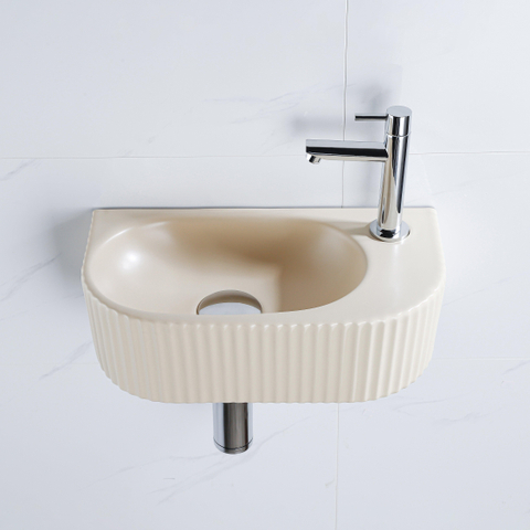 QeramiQ Fuente Ensemble de Lavabo - 40x21.5x12cm - droite - strié - demi-rond - 1 trou de robinet - céramique - robinet de lavabo chromé - bouchon de vidange - siphon abaissé - beige