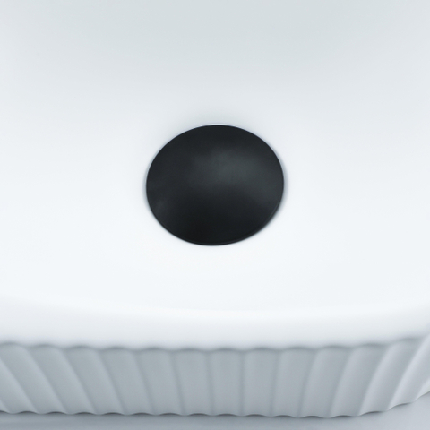 QeramiQ Fuente Ensemble de lavabo - 40x21.5x12cm - gauche - nervuré - demi-rond - 1 trou de robinet - céramique - robinet de lavabo noir mat - bonde - siphon abaissé - blanc mat