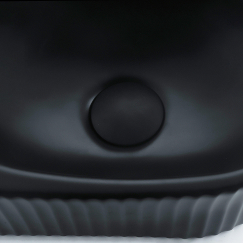QeramiQ Fuente Ensemble de lavabo - 40x21.5x12cm - gauche - rainuré - demi-rond - 1 trou de robinet - céramique - robinet de lavabo noir mat - bonde - siphon abaissé - noir mat