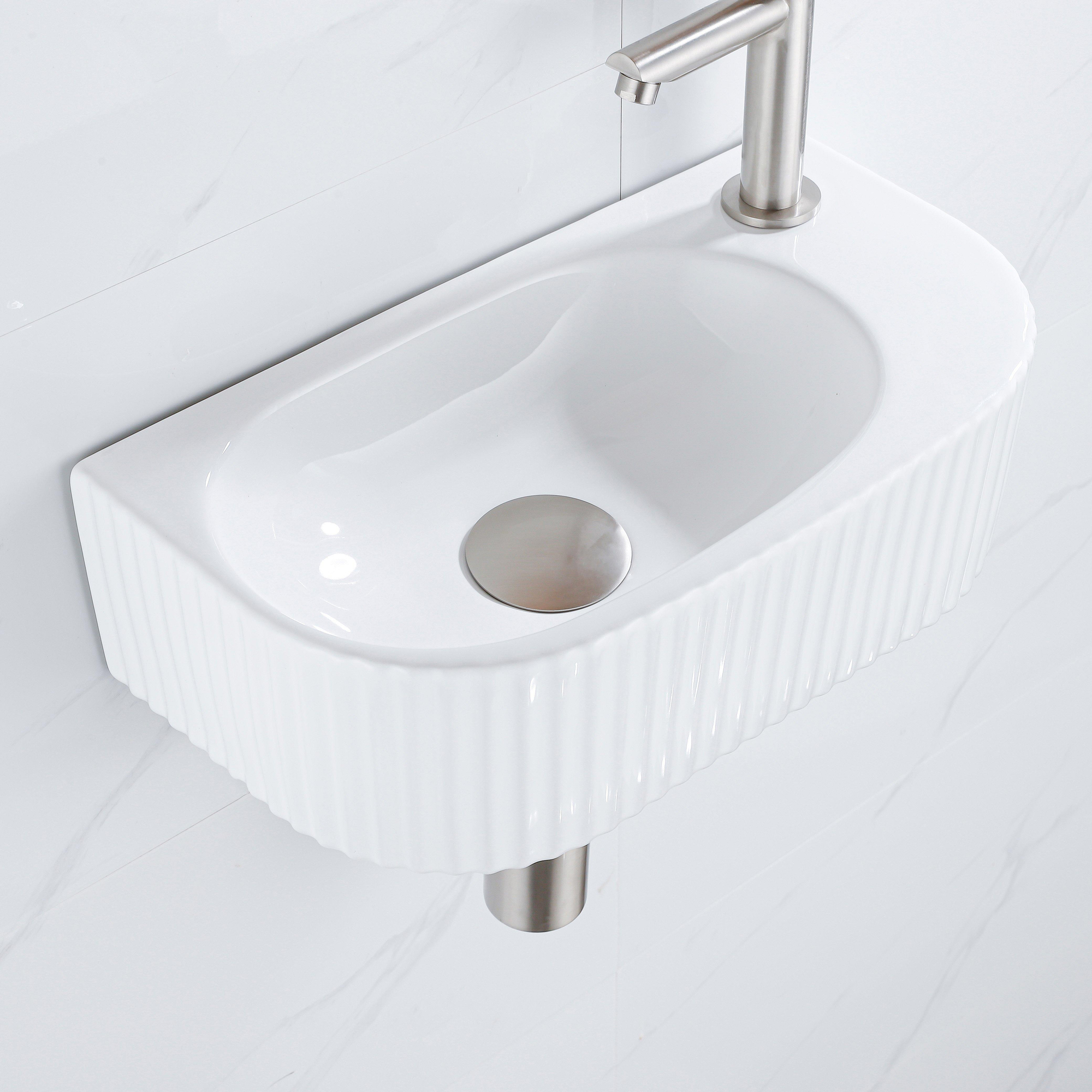La finition nervurée de cet ensemble de lave-mains apporte une texture subtile qui offre un aspect unique à votre salle de bains. Le design ludique ajoute une touche de caractère et se distingue des lave-mains traditionnels. Avec sa forme semi-ronde et son trou de robinet sur le côté droit, cet ensemble de lave-mains est un véritable accroche-regard qui combine fonctionnalité et esthétique.
