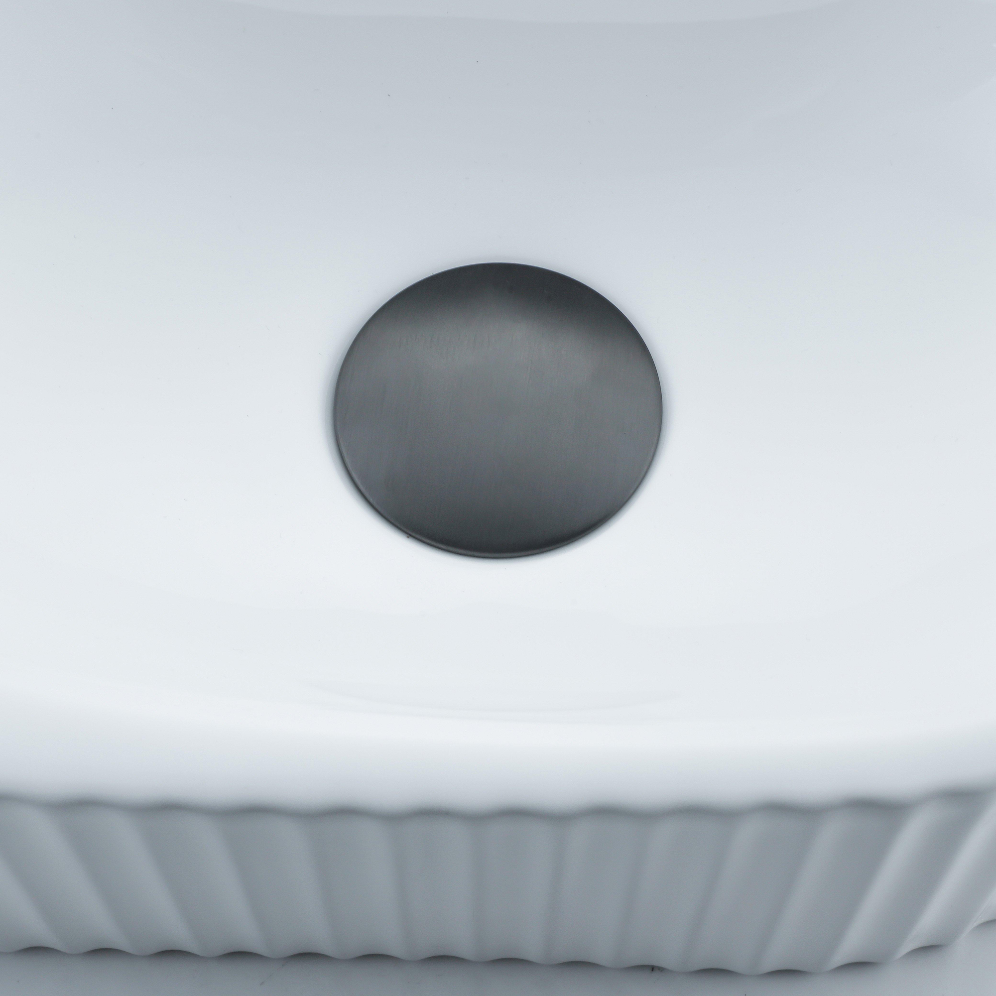 Le robinet de lave-mains avec finition gunmetal confère un aspect robuste et moderne à l'ensemble de lavabo. La teinte gris profond ajoute une touche de luxe et crée un magnifique contraste avec le blanc éclatant du lave-mains en céramique. La finition gunmetal donne à l'ensemble une apparence contemporaine et tendance.