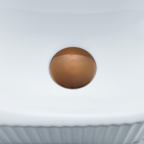 QeramiQ Fuente Ensemble de lavabo - 40x21.5x12cm - gauche - nervuré - demi-rond - 1 trou de robinet - céramique - robinet de lavabo cuivre brossé - bouchon de vidange - siphon abaissé - blanc brillant