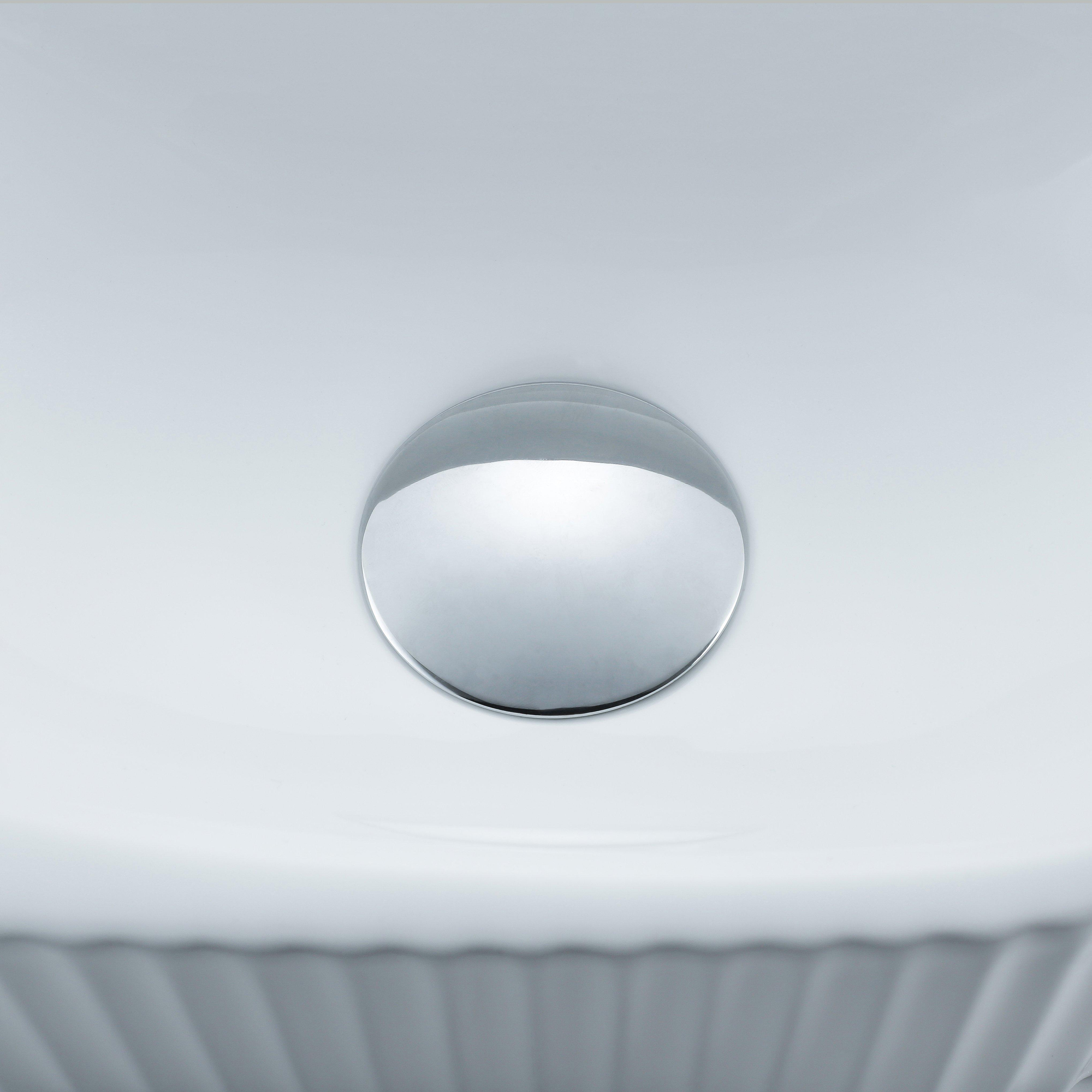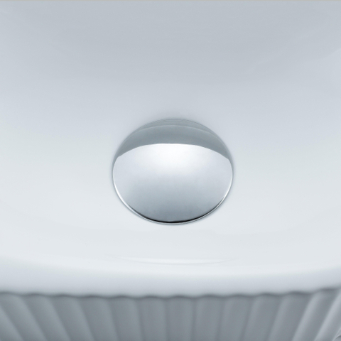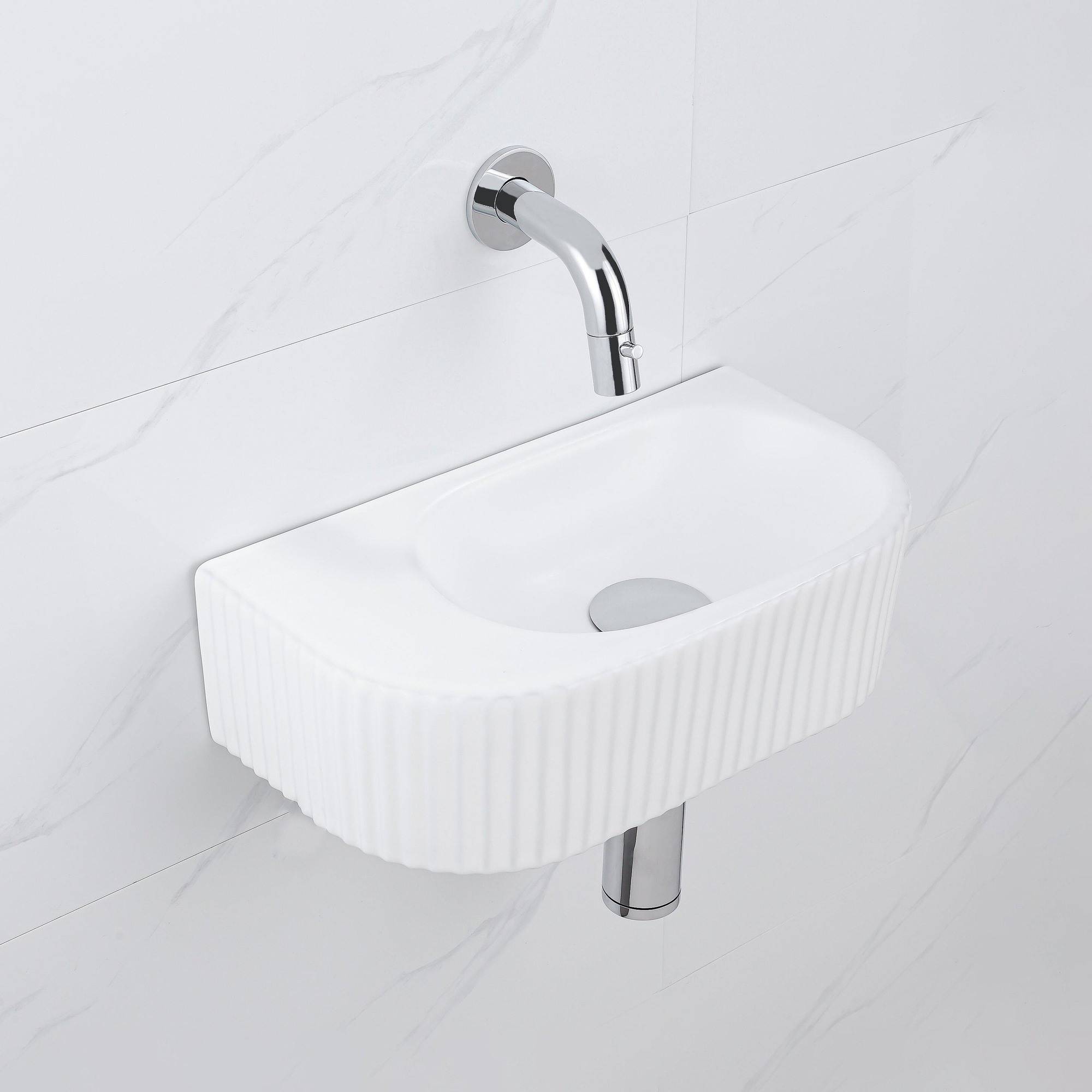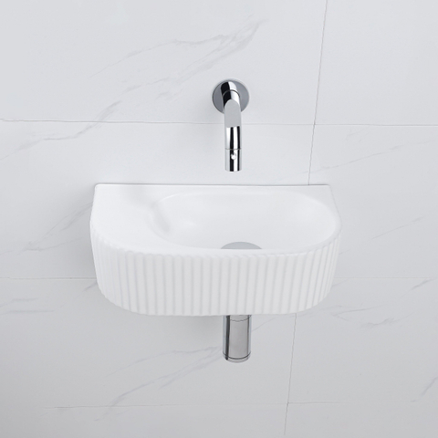 QeramiQ Fuente Ensemble de Lavabo - 40x21.5x12cm - strié - demi-rond - céramique - ensemble de robinet chrome - bouchon de vidange - siphon réduit - blanc mat