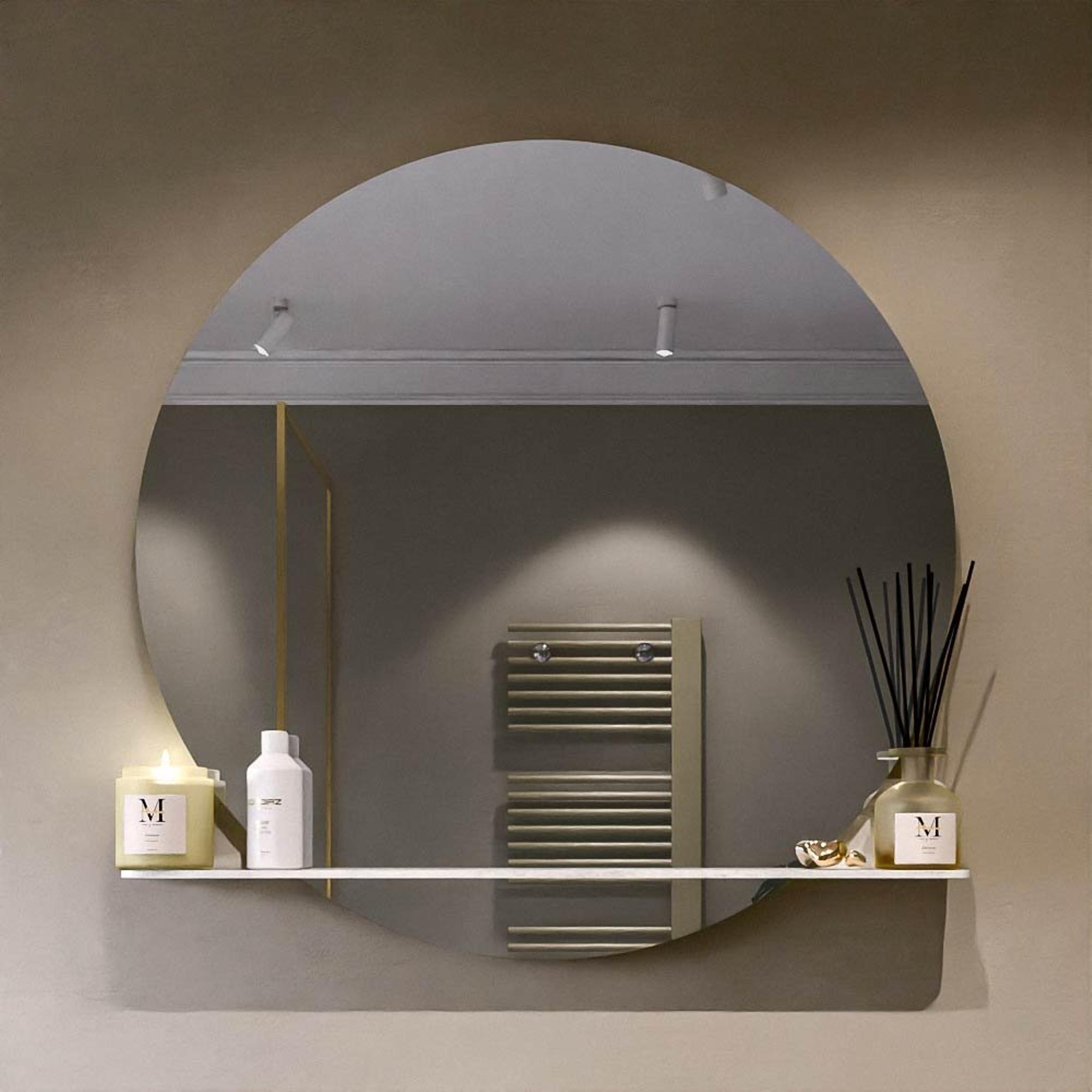 Ce grand miroir de salle de bains rond avec tablette intégrée est idéal si vous êtes à la recherche d’un élément accrocheur stylé et d’un espace de rangement supplémentaire en un seul produit. Grâce au diamètre de 100 cm, ce modèle est parfait pour les salles de bains de taille moyenne à grande, par exemple au-dessus d’un lavabo simple ou double. Le miroir subtilement encastré a un aspect épuré et moderne, tandis que le bord solide de la tablette offre de la place pour vos objets du quotidien, comme les brosses à dents, le parfum ou des accessoires décoratifs. Grâce au design épuré et à la couleur mate et douce, ce miroir se combine sans effort avec une grande variété de meubles de salle de bains et de styles de carrelage, du moderne minimaliste au scandinave et à l’ambiance hôtel chic. Si vous privilégiez les matériaux durables et de qualité ainsi qu’une apparence intemporelle dont vous profiterez pendant de nombreuses années, il s’agit d’un choix particulièrement judicieux.