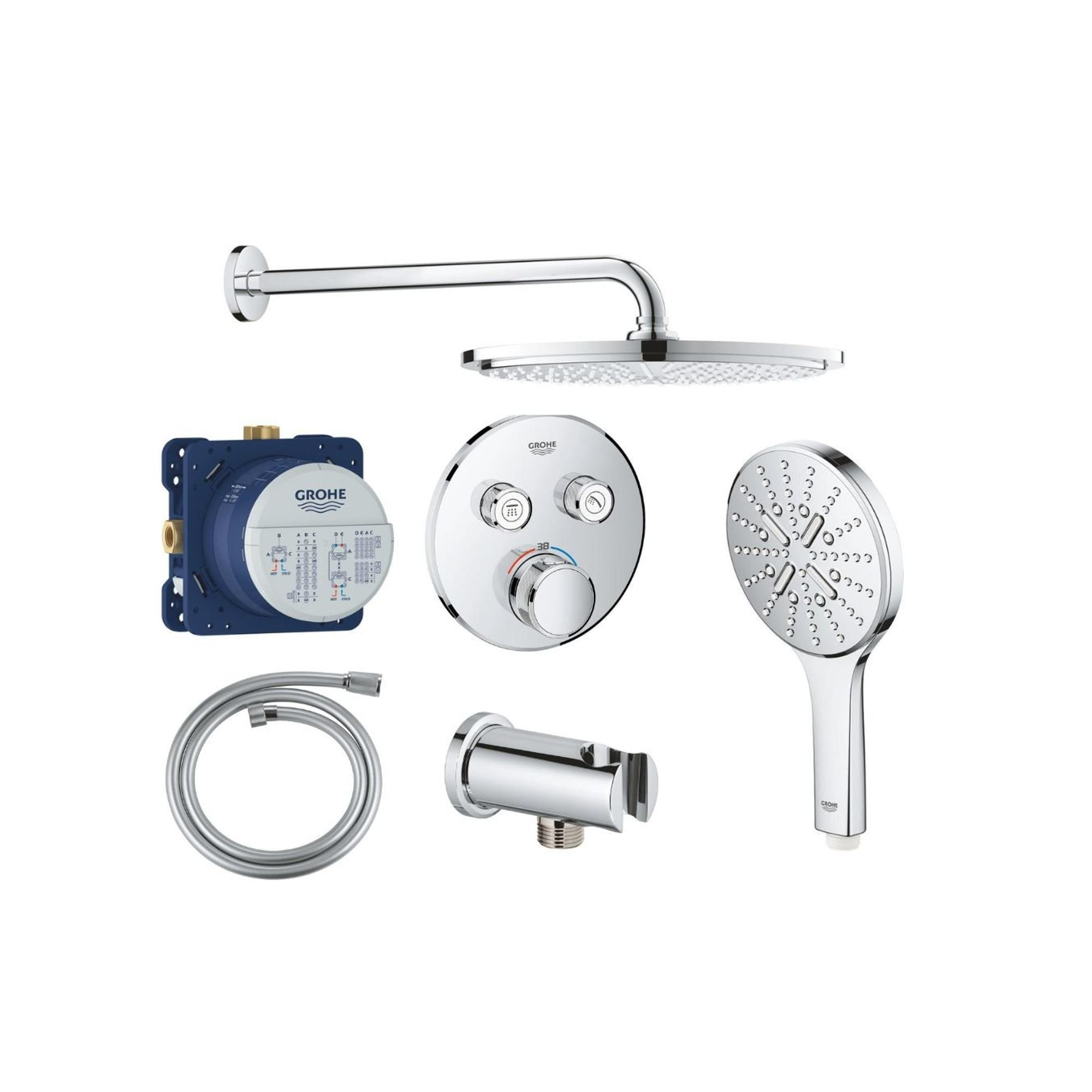 Grohe Grohtherm Ensemble de douche pluie encastré - pomme de douche ronde - douchette ronde - bras mural courbé - chrome