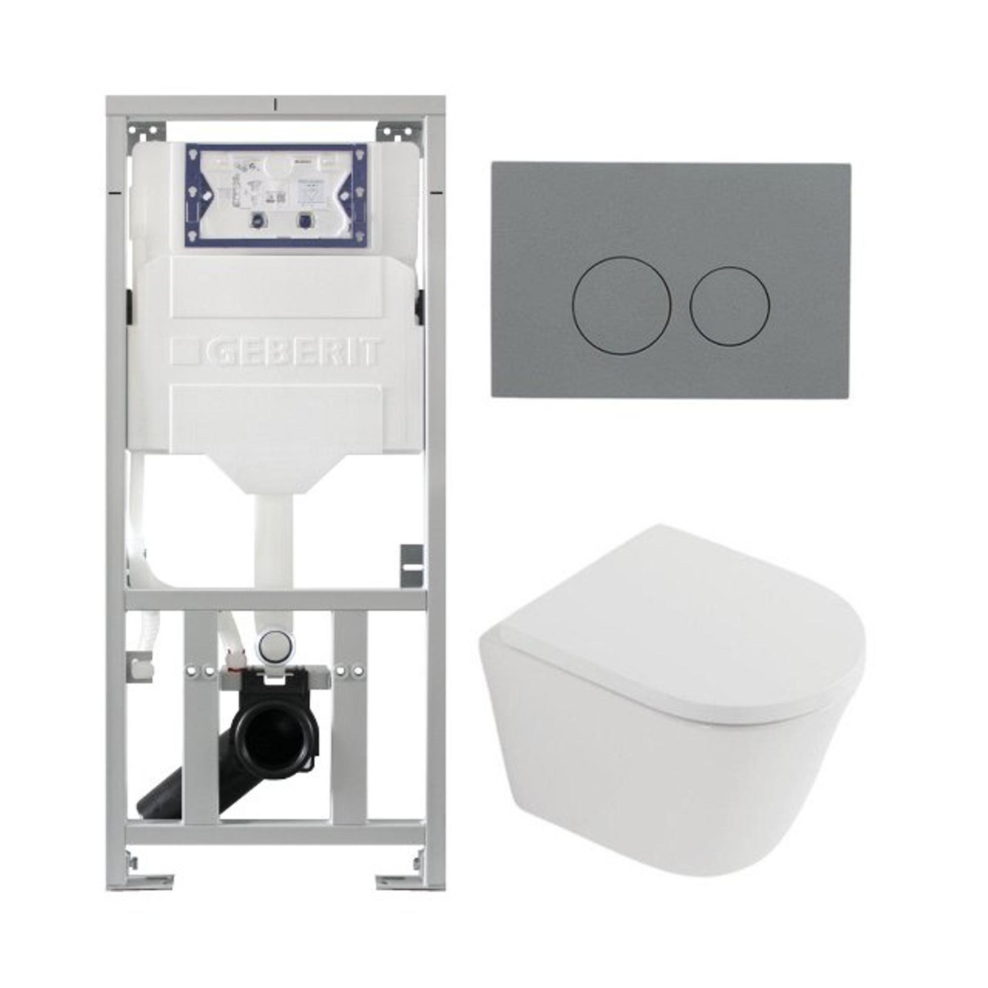 QeramiQ Dely Pack WC - 36,3x51,7cm - à fond creux - sans bride - réservoir encastré Geberit UP320 - abattant WC softclose 35 mm - plaque de déclenchement gris clair - boutons ronds - blanc mat
