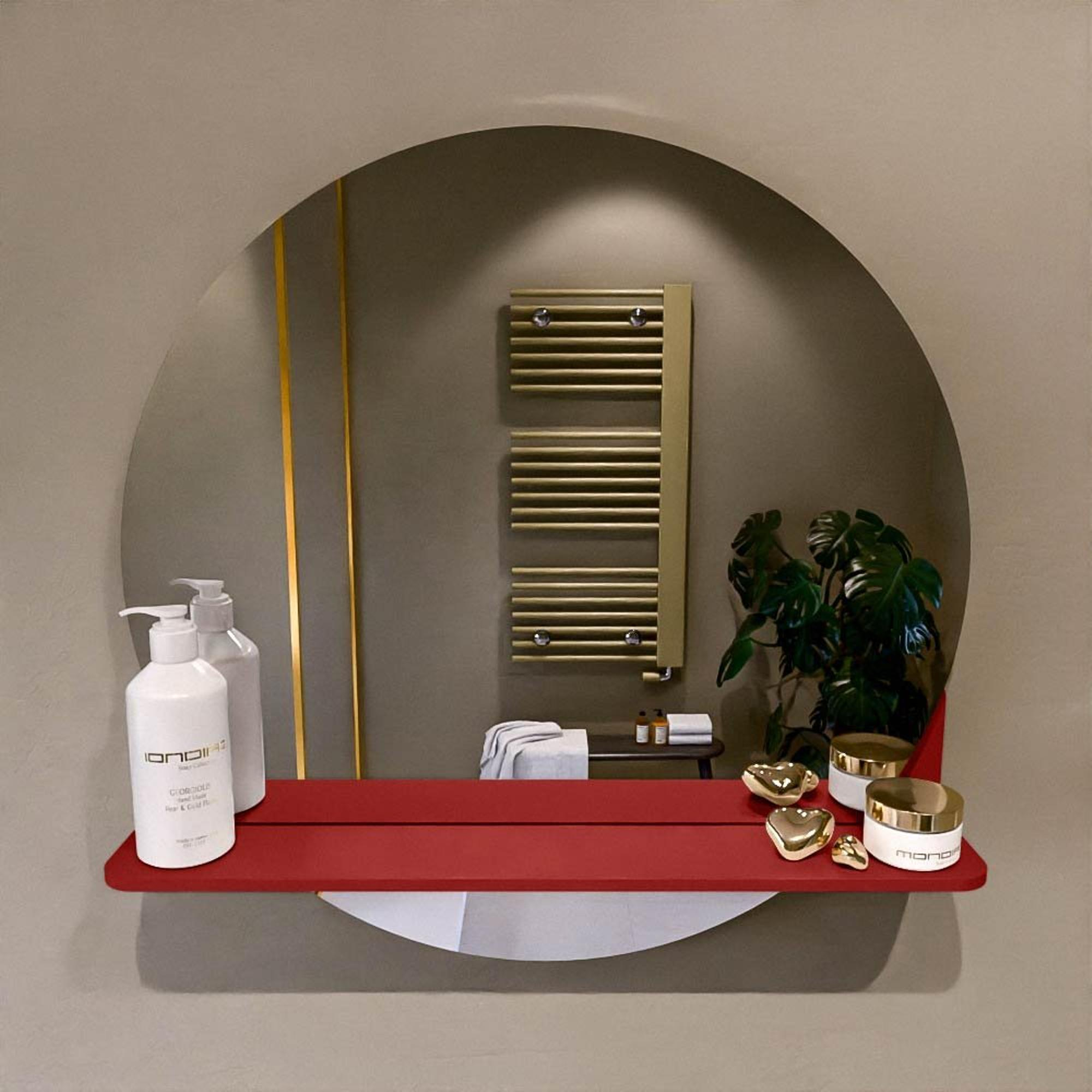 La couleur Fire mate confère immédiatement à ce miroir une allure luxueuse et design. C’est une teinte chaude tirant sur le rouge qui s’accorde parfaitement à une salle de bains moderne avec, par exemple, du bois, un aspect béton ou des carreaux blancs. Vous créez ainsi un accent fort sans que l’ensemble ne devienne criard. Grâce à sa forme ronde, l’espace bénéficie d’une ambiance plus douce et accueillante, et grâce à la finition mate, la tablette paraît chic et contemporaine. Associez cet élément accrocheur à des accessoires assortis ou à un meuble de la même famille de couleurs et vous créez en un clin d’œil un look réfléchi et harmonieux dans votre salle de bains.