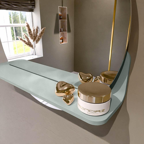 La tablette est réalisée en Solid Surface, un matériau réputé pour sa finition soignée, sa résistance aux rayures et sa longue durée de vie. Concrètement, cela signifie que vous pouvez poser vos produits du quotidien sur la tablette sans souci et que les petites éclaboussures ou taches se retirent facilement avec un chiffon doux. Le Solid Surface offre en outre une sensation confortable et massive, ce qui contribue à l’aspect plus luxueux de votre salle de bains. Grâce au caractère facile d'entretien de ce matériau, la tablette conserve pendant des années un aspect frais et soigné, même en cas d'utilisation quotidienne intensive.