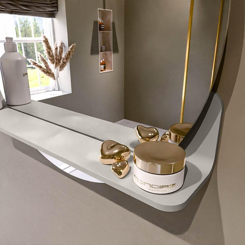 La tablette intégrée sous le miroir permet de garder vos produits préférés toujours à portée de main. Pensez à votre gobelet à brosses à dents, votre savon pour les mains, votre parfum ou votre maquillage