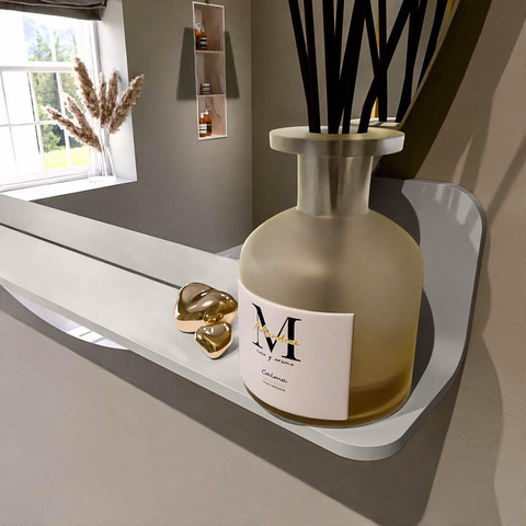 La tablette intégrée sous le miroir est une solution astucieuse si vous souhaitez garder votre plan de lavabo aussi dégagé que possible. Vous avez vos affaires quotidiennes à portée de main, mais tout de même correctement regroupées à un endroit fixe. Cela est non seulement agréable à l’usage au quotidien, mais aide aussi à préserver la tranquillité visuelle dans la salle de bains. La profondeur du plateau est choisie de manière pratique : suffisamment d’espace pour les flacons et accessoires, sans qu’il ne dépasse de façon gênante. Grâce aux coins arrondis, la tablette a un aspect doux et accueillant, ce qui ressort particulièrement bien dans les petits espaces ou au-dessus d’un meuble de salle de bains compact. Vous bénéficiez ainsi d’un rangement de salle de bains astucieux sans devoir installer d’armoires ou d’étagères supplémentaires.