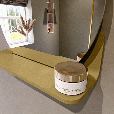 La tablette est fabriquée en solid surface, un matériau réputé pour son aspect épuré et ses propriétés pratiques. Il est lisse et massif au toucher, résiste aux rayures dans des conditions d’utilisation normales et se nettoie facilement avec un chiffon doux et un nettoyant doux. Les angles arrondis ne contribuent pas seulement à un design chaleureux, ils facilitent également le nettoyage sans traces de la surface. Comme le solid surface est résistant aux UV et aux décolorations, la teinte Oro reste belle durablement, même dans une salle de bains très utilisée. Vous optez ainsi non seulement pour un design élégant, mais également pour une solution durable dont vous profitez au quotidien.