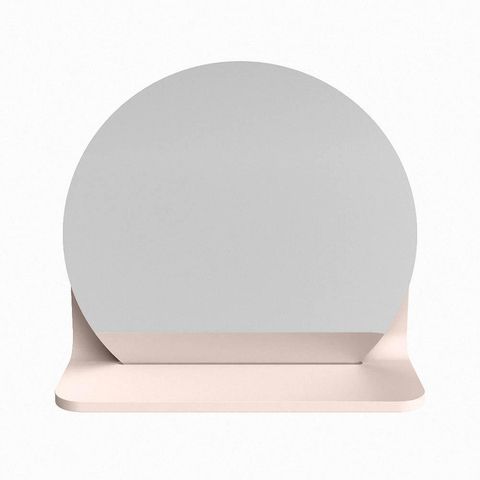 Ce miroir de salle de bains rond et compact avec tablette intégrée est idéal si vous disposez de peu d'espace, mais que vous recherchez tout de même une solution élégante et pratique. Pensez à un espace toilettes, une petite salle de bains ou une niche à côté de la baignoire : vous créez en une seule fois un beau miroir et une tablette pratique pour vos affaires quotidiennes. Grâce à son design minimaliste et à sa douce teinte rose, cet accessoire s'intègre sans effort dans les intérieurs modernes, scandinaves ou de style hôtel chic. Utilisez la tablette pour votre savon pour les mains, votre parfum ou votre maquillage, ou encore comme accent subtil au-dessus d'une fontaine ou d'un meuble-lavabo étroit. Grâce au matériau solide et à la conception bien pensée, vous introduisez chez vous un véritable accroche-regard qui non seulement est beau, mais aussi pratique à utiliser au quotidien.