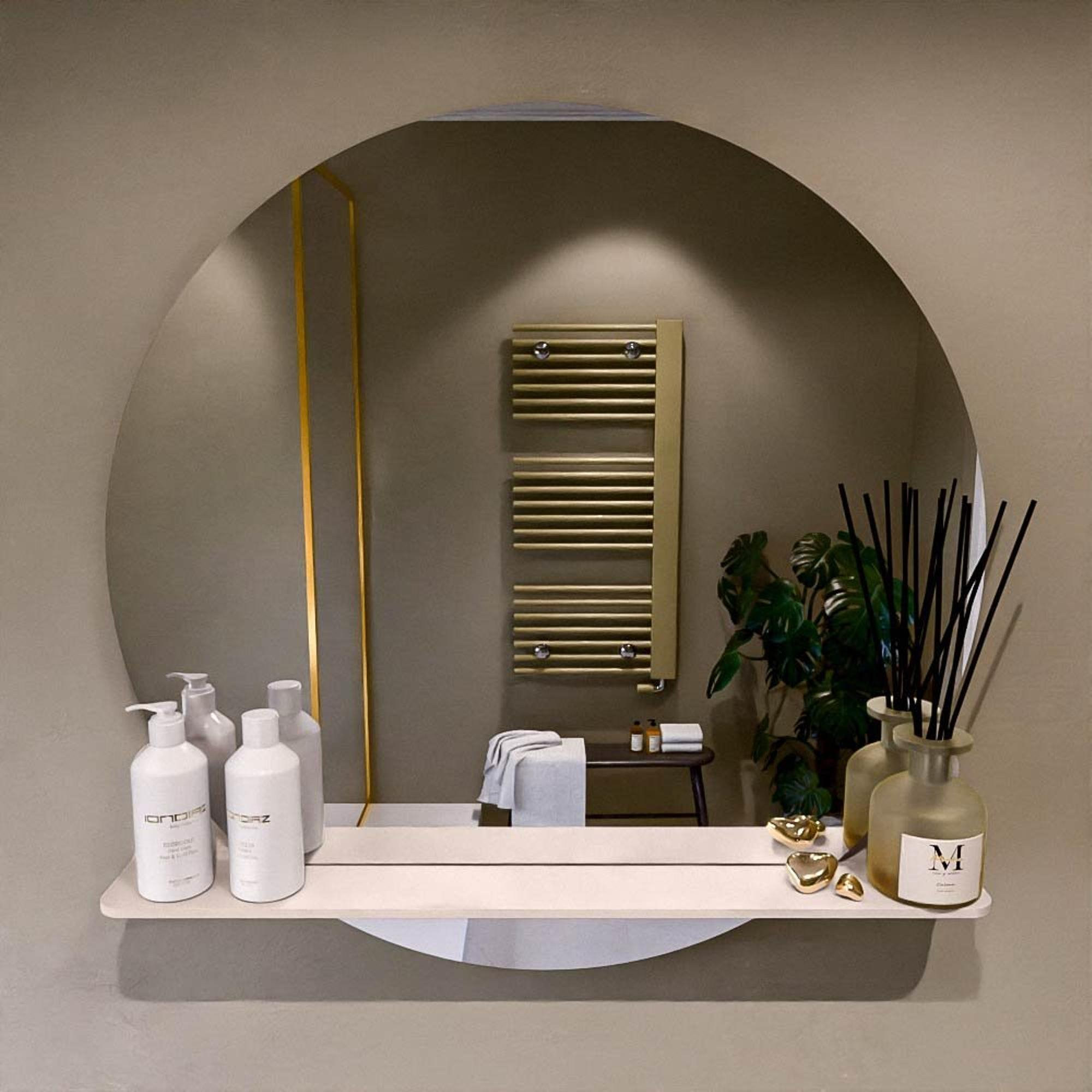 La tablette intégrée sous le miroir fait toute la différence en termes de confort au quotidien. Avec une largeur de 80 cm et une profondeur de 12 cm, vous disposez d’un emplacement pratique pour les brosses à dents, le savon, les parfums ou des accessoires décoratifs, sans encombrer votre lavabo. Les coins harmonieusement arrondis donnent à l’ensemble un aspect doux et agréable à l’usage, même dans les espaces plus petits où l’on passe facilement à proximité. Comme le miroir est subtilement encastré dans la tablette, l’ensemble forme un bloc épuré, sans bords saillants ni petites étagères séparées à monter. Cela crée non seulement une impression de calme, mais rend également le nettoyage beaucoup plus simple.